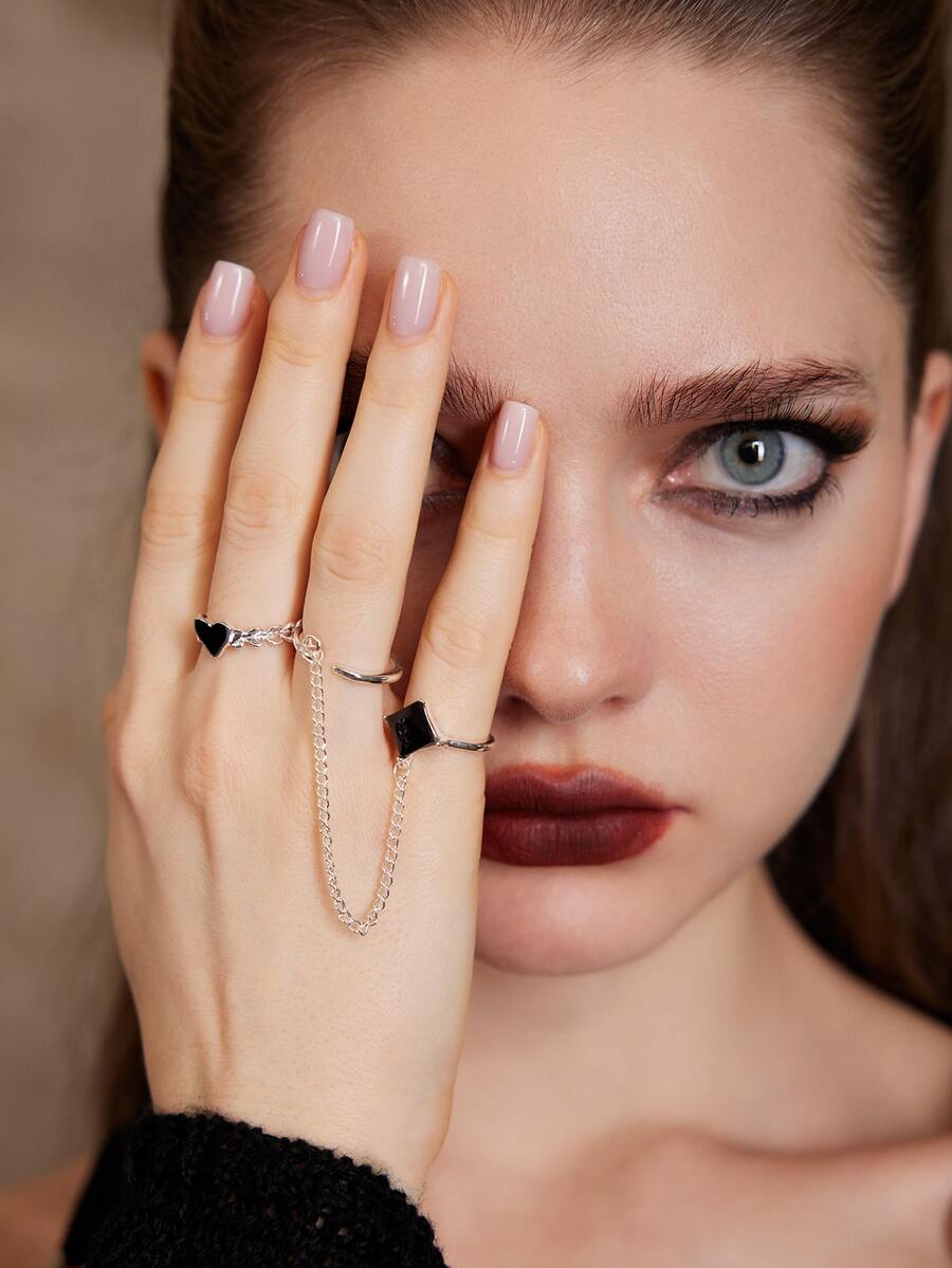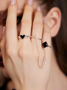 خاتم قفازات قلب و بديكور حجر الراين 2 قطع