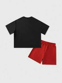 Astro Boy X ROMWE مجموعة قميص كم قصير بطبعة شخصية كرتونية وشورت بخصر رباط للرجال، 2 قطعة