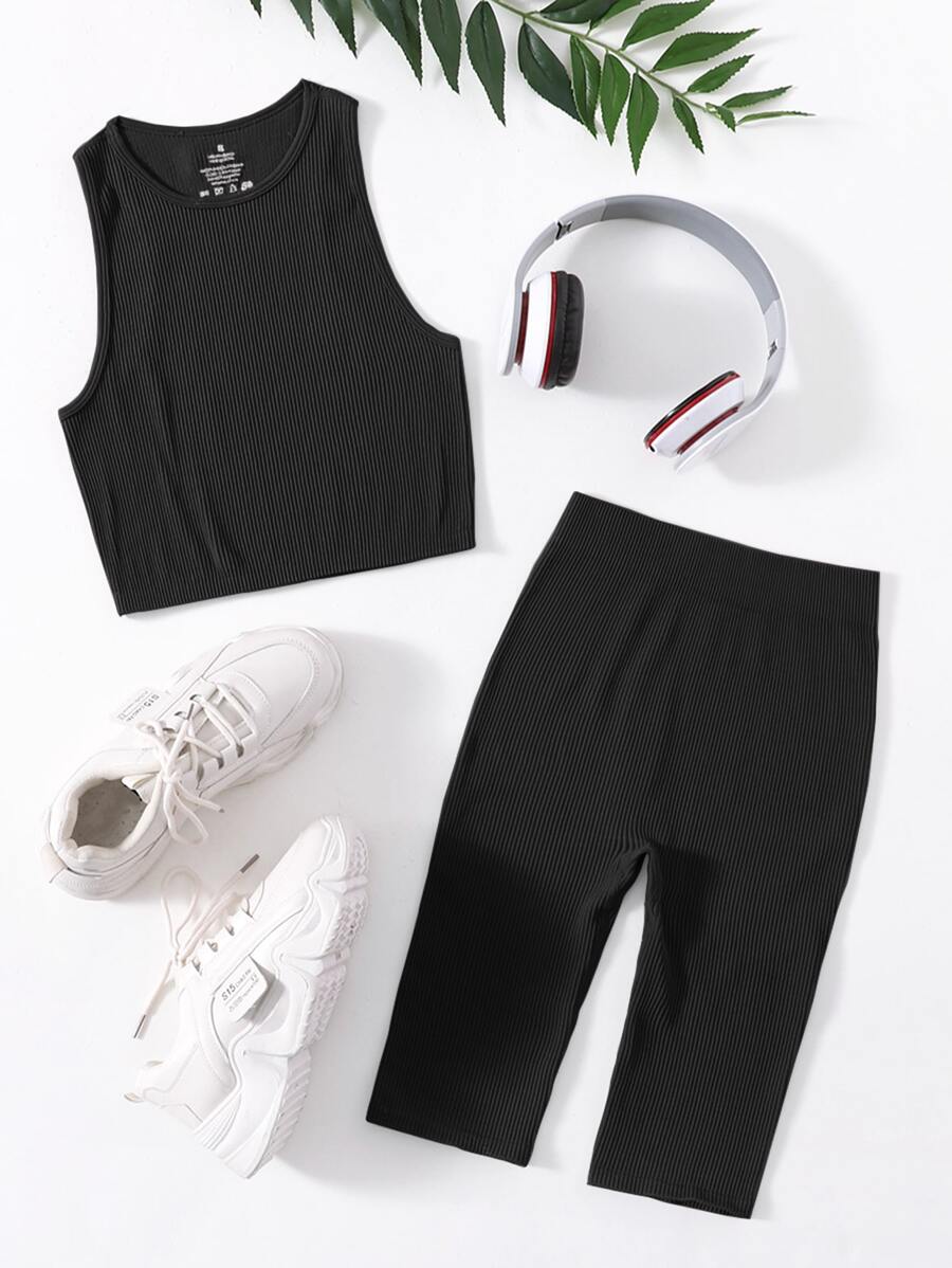 مجموعتان من بذلة رياضية سلسة، بدلة رياضية، مجموعة صالة الألعاب الرياضية، خزان علوي مرتب، شورت دراجة للنساء، مجموعات تمرين للنساء