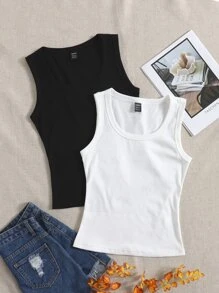 لباس علوي تانك موحدة اللون محبوك مضلع 2 قطع