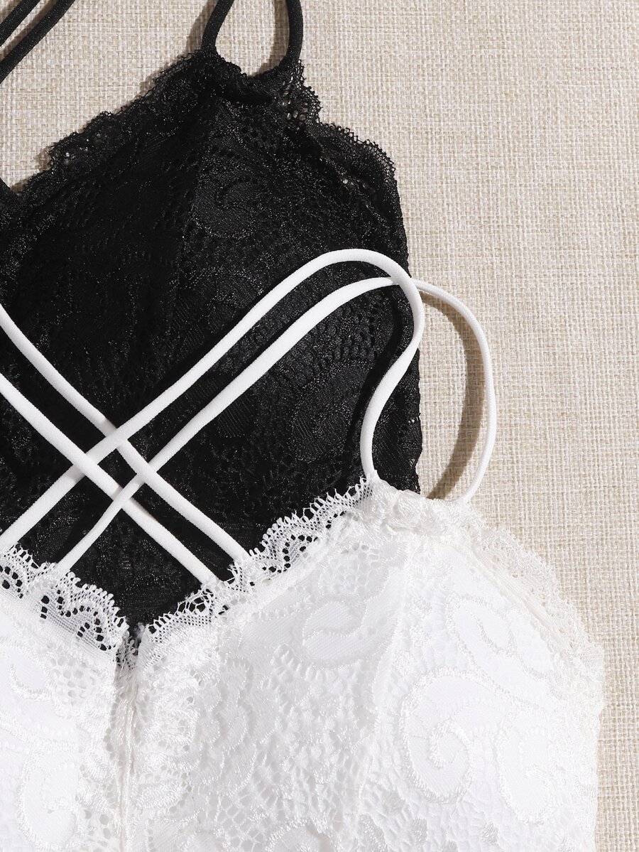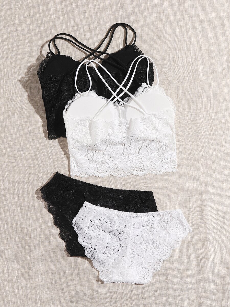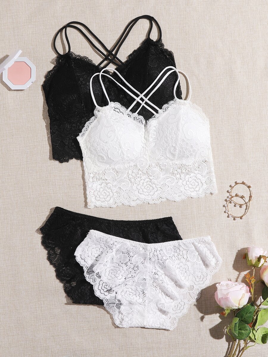 2 مجموعات من مجموعات الملابس الداخلية الدانتيل الأزهار طويلة