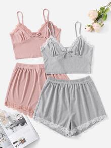 مجموعتان من بيجامة بشريط دانتيل أمام الفيونكة / مجموعة بيجامة