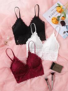 طقم ملابس داخلية من الدانتيل المزهر 3 قطع