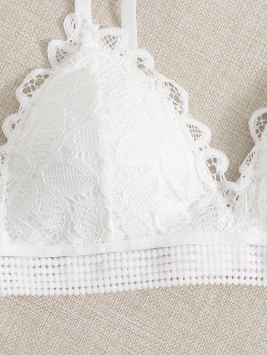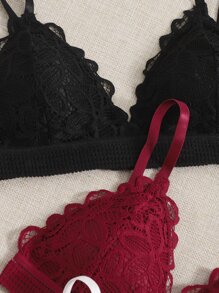 طقم بطانية ذات رباط زهري بملمس الدانتيل، 3 قطع