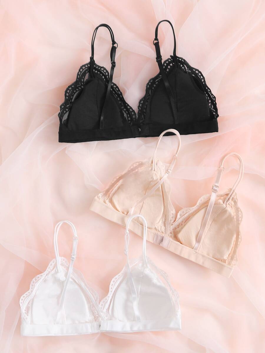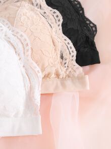 طقم حمالة صدر مثلث بدانتيل مزهر 3 قطع