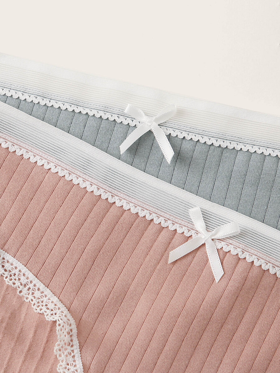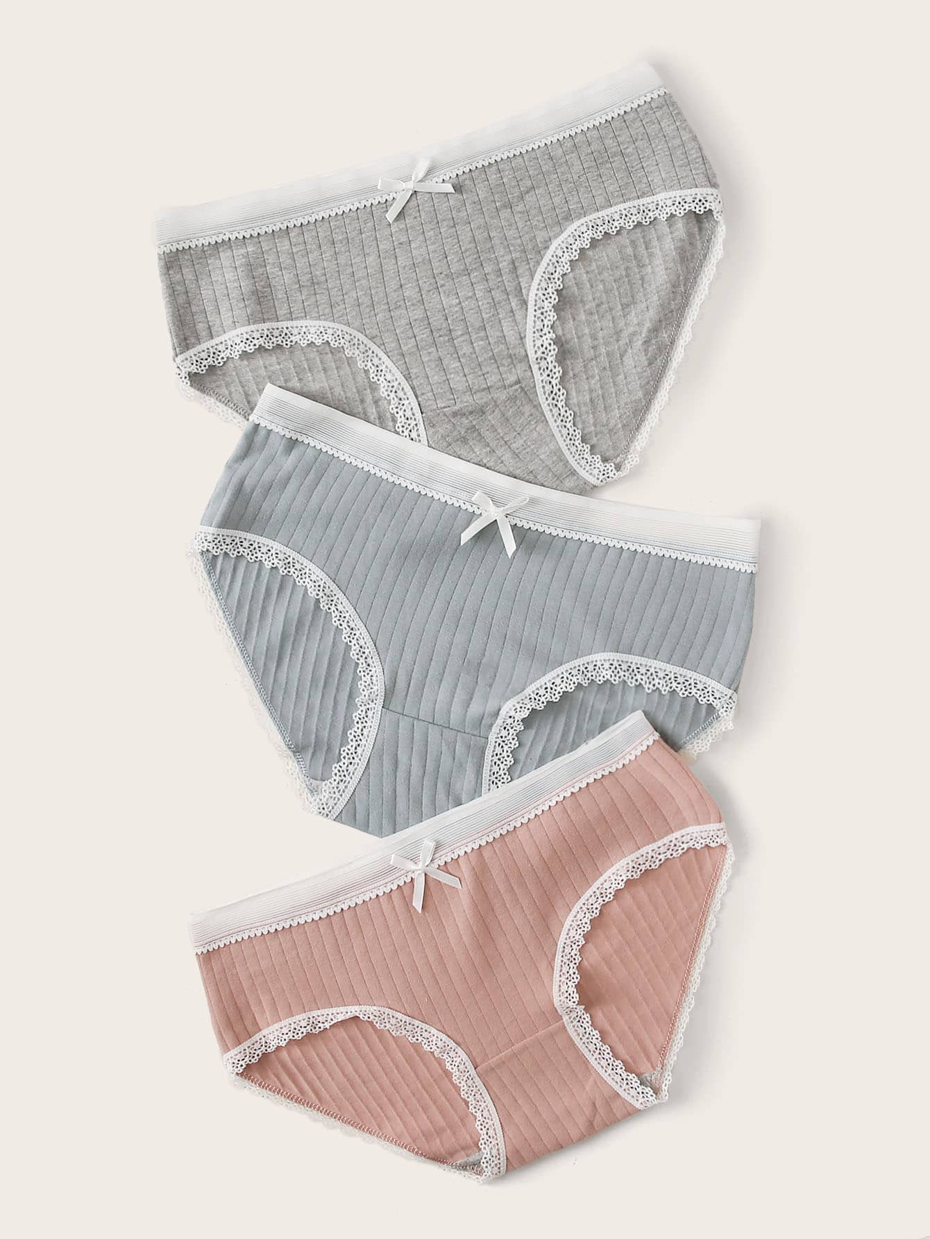 طقم لباس داخلي بأطراف دانتيل مضلع - 3 قطع