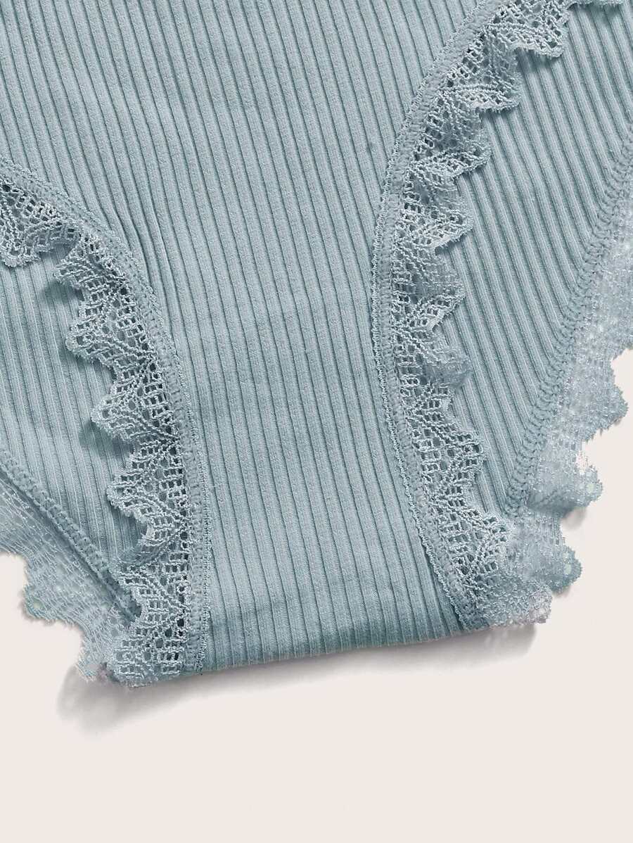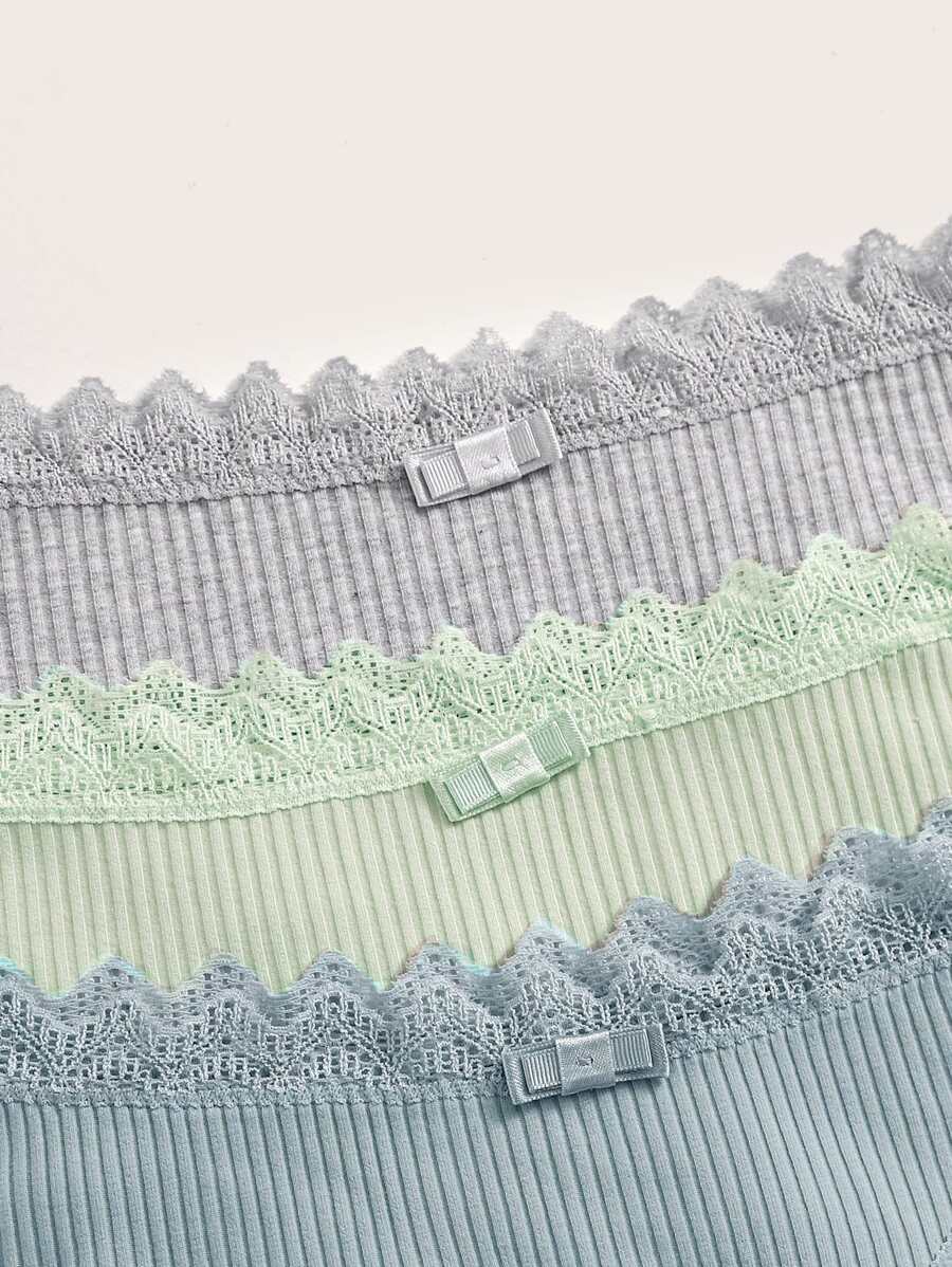 طقم سروال مضلع ومقلم بدانتيل 3 قطع