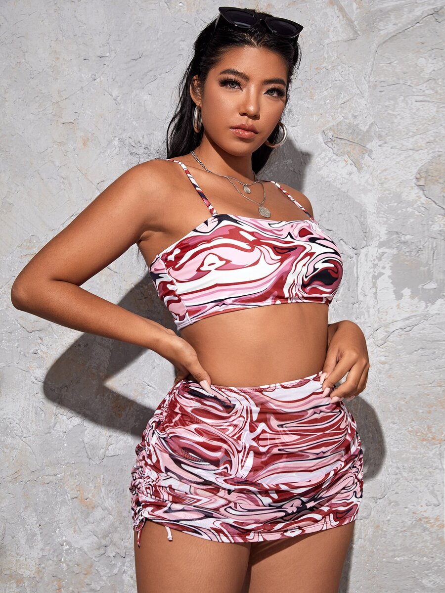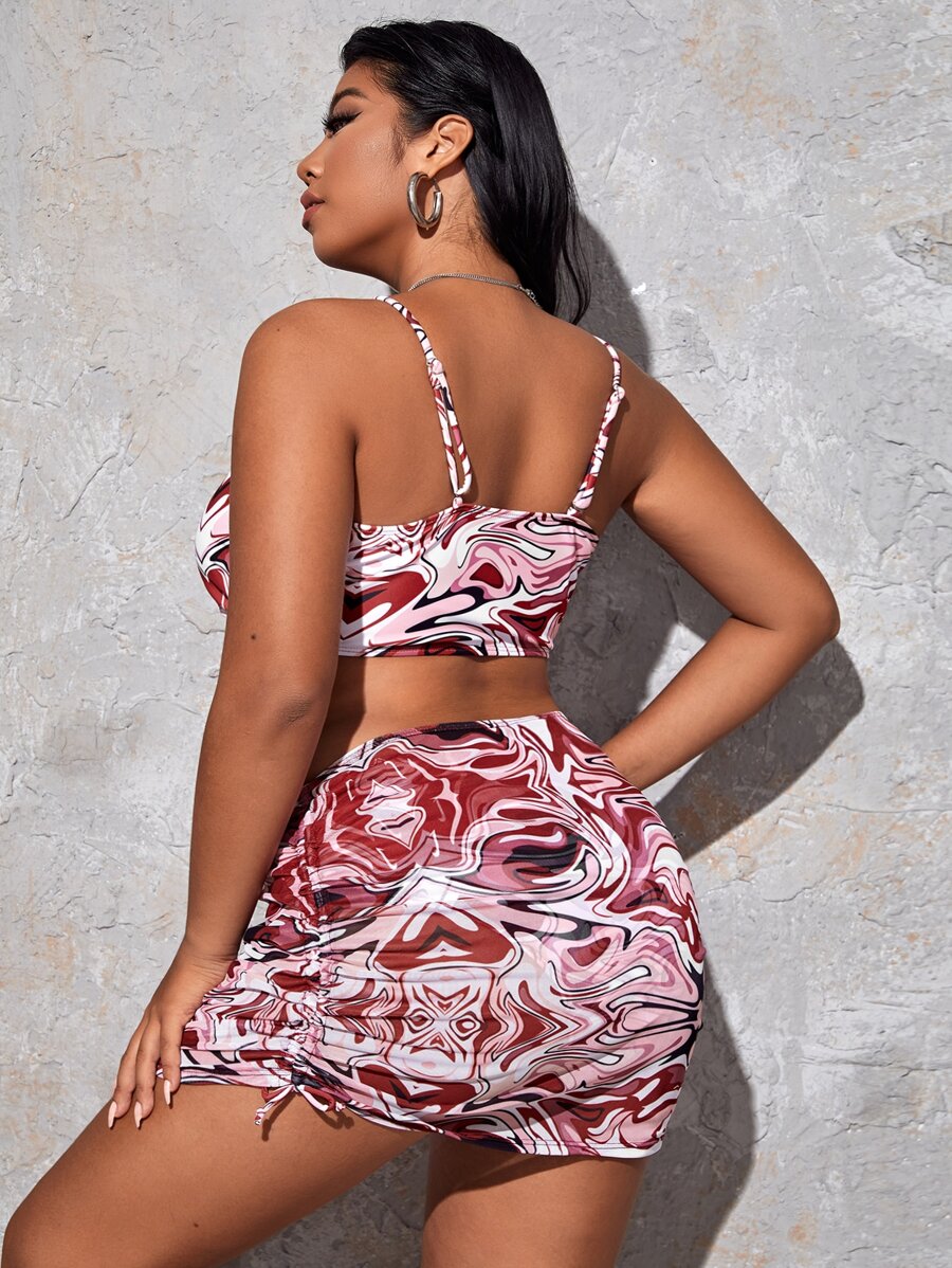 3حزم بيكيني ذات نمط سائل انسيابي وتنورة شاطئ مقاس كبير، أزياء شاطئ صيفية