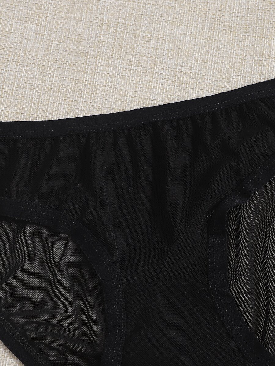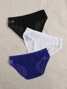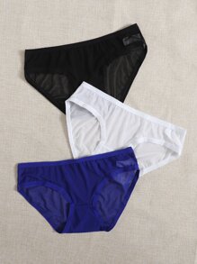 طقم سروال داخلي موحدة اللون شبكة 3 قطع