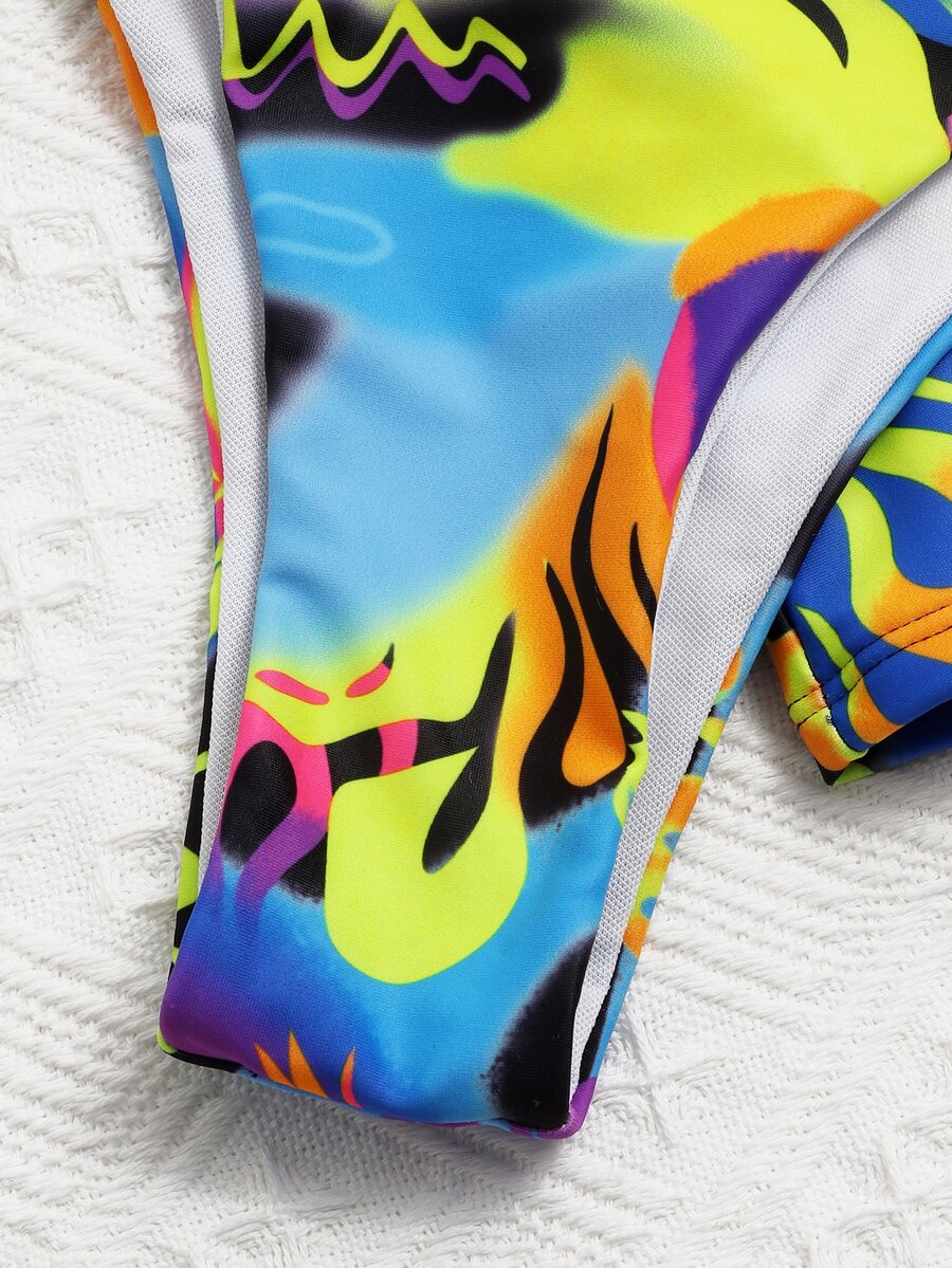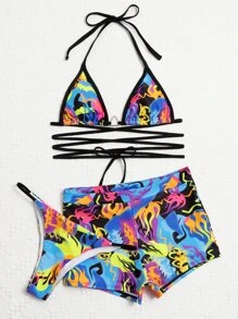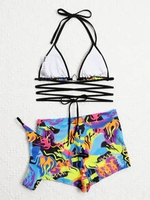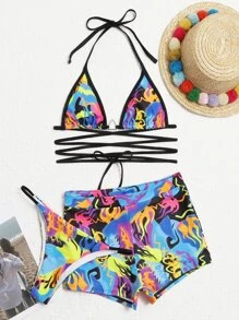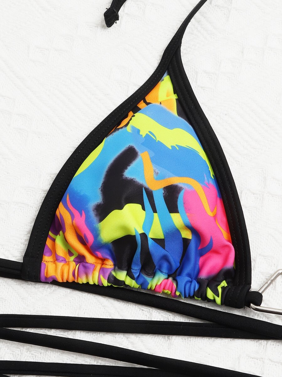 طقم بيكيني مثلث مطبوع بالنار 3 حزمات للصيف على الشاطئ