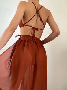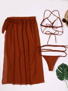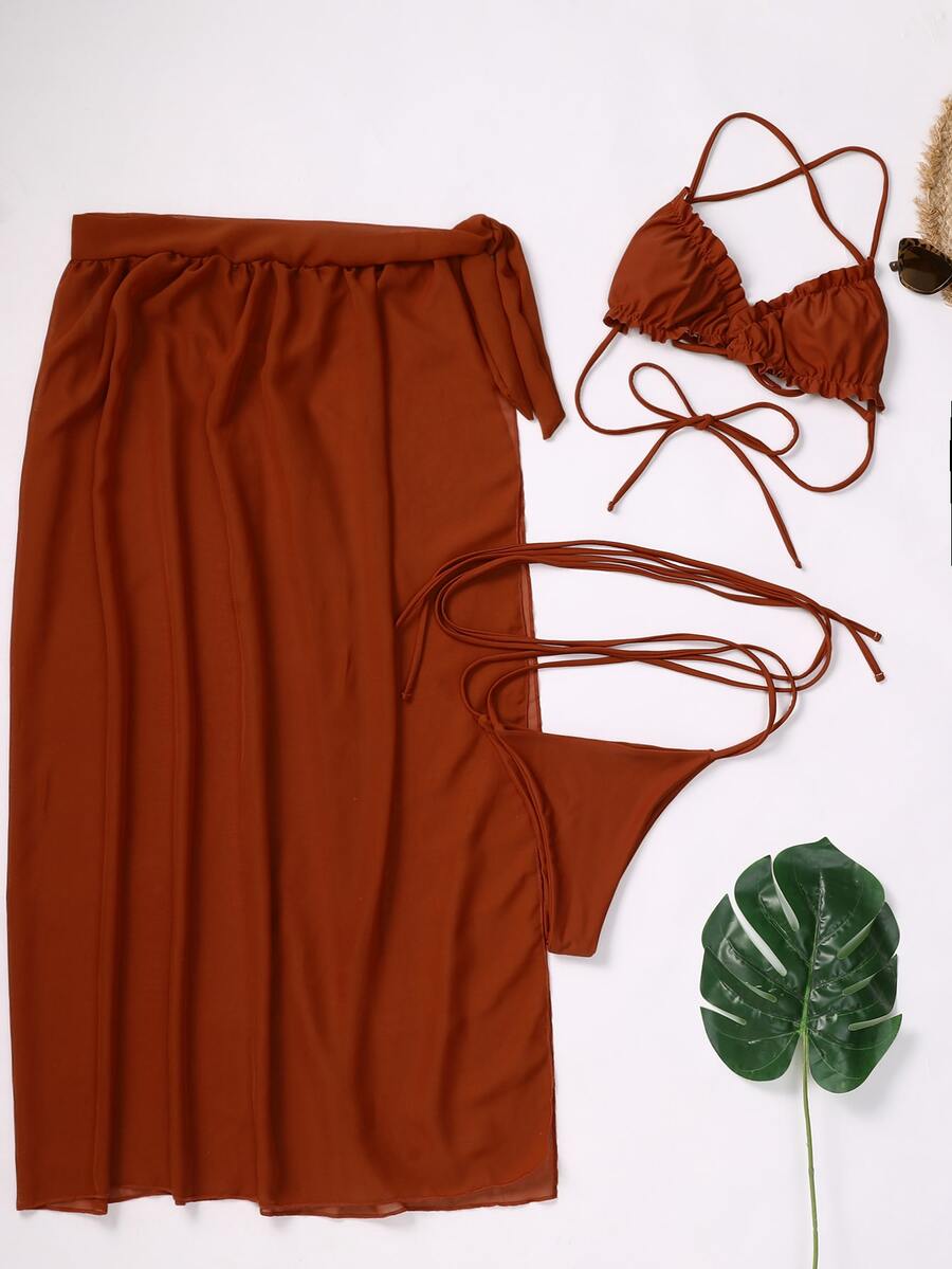 مجموعة بيكيني عقدة فريل مكونة من 3 حزم مع تنورة شاطئ صيفية