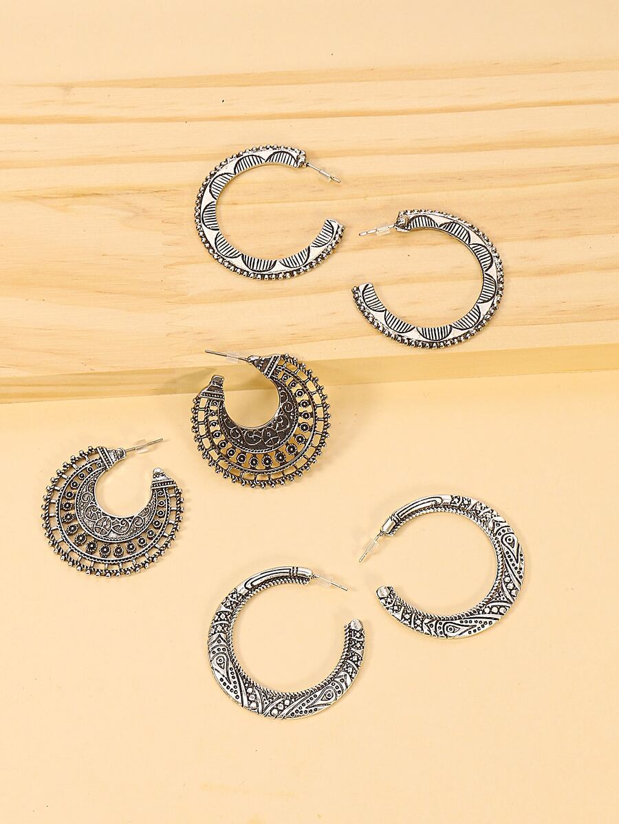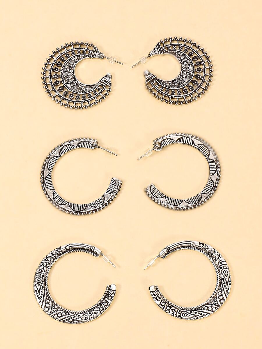 اقراط حلقي ملفوف بوهمي 3 ازواج