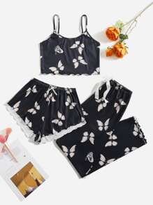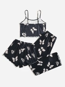 3 قطع بطباعة الفراشة مقلم نمط نبات الخس صدرية كامي مع البنطلون القصير مع بنطلون طقم بيجامة