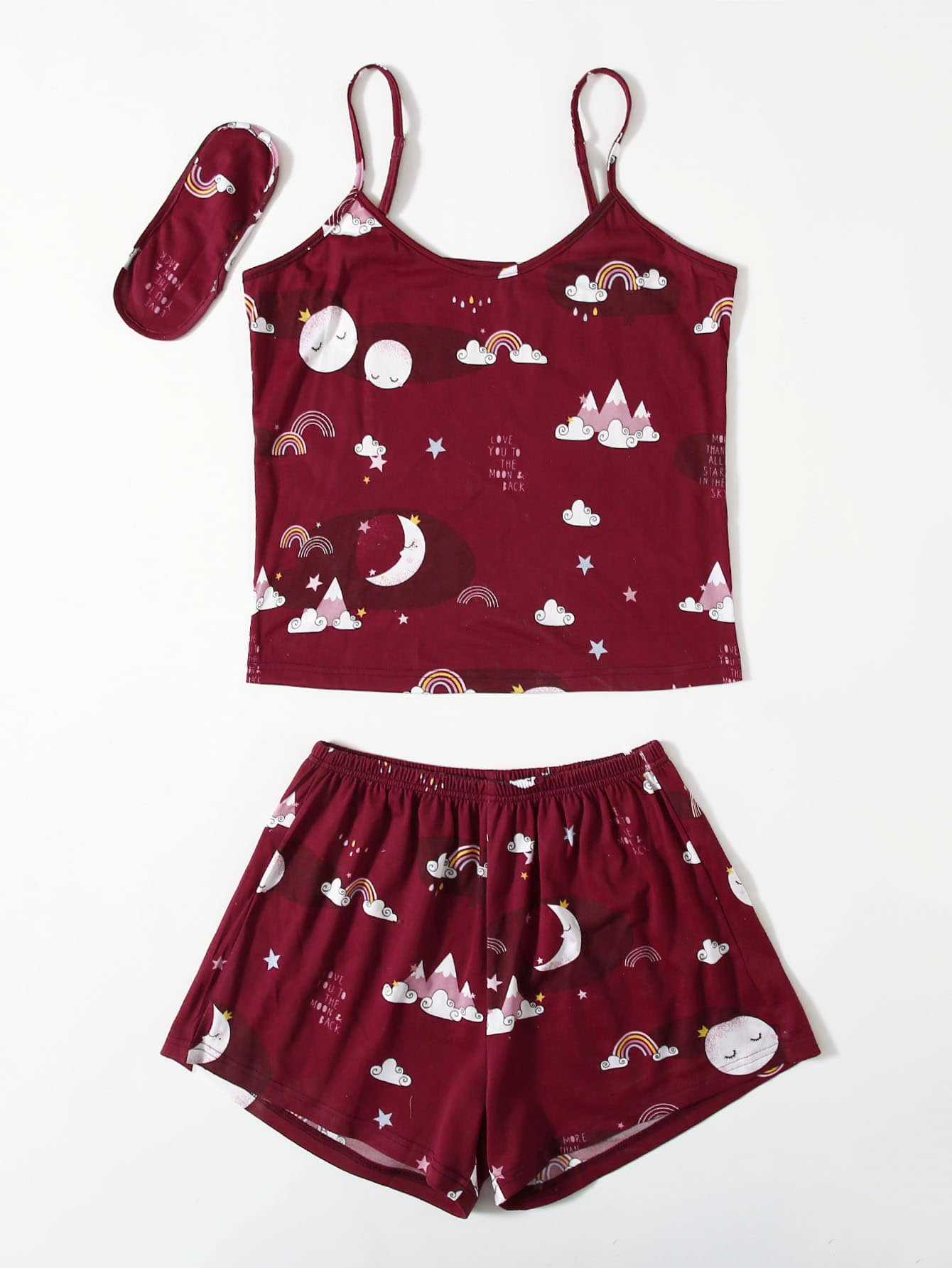 طقم بيجامة كامي بجرافيك كرتون وشعار مع غطاء عين - 3 قطع