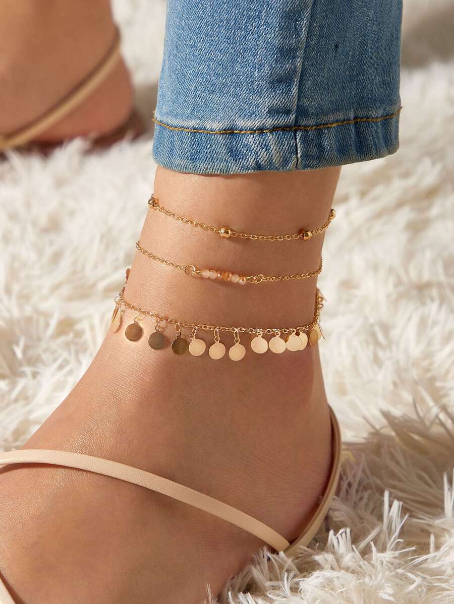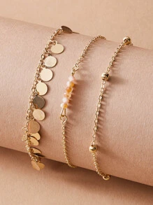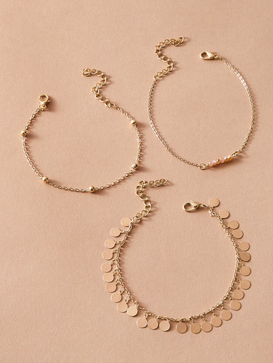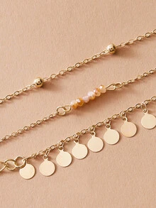 خلخال سلسلة خرز واسطوانة 3 قطع