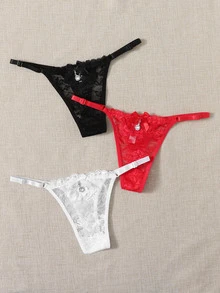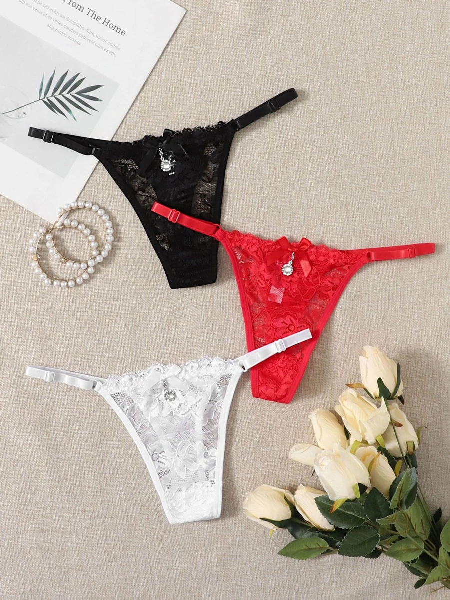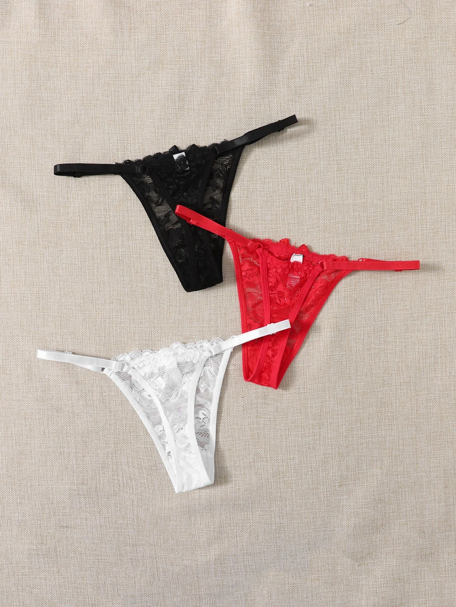 3 قطع مجموعة ملابس داخلية من الدانتيل المزهر، جذاب، حفلة