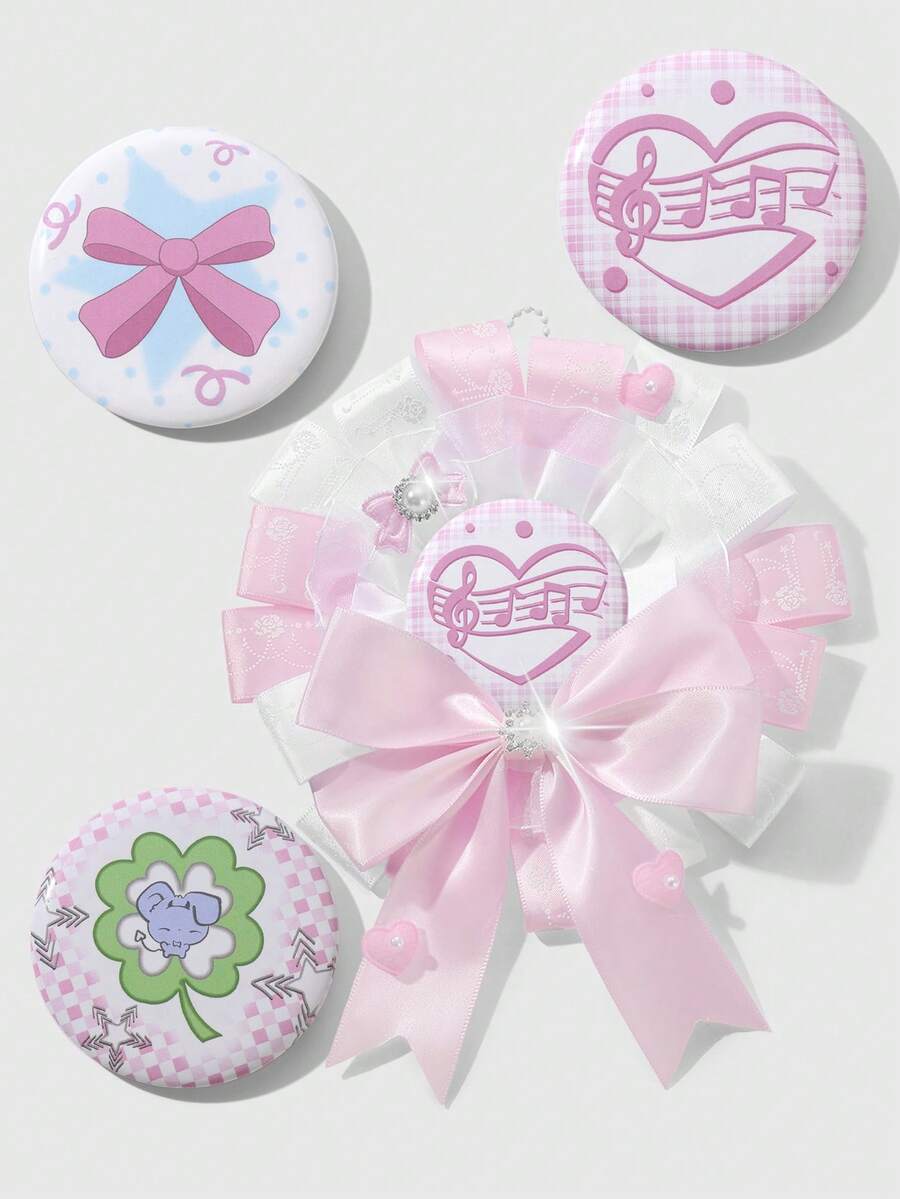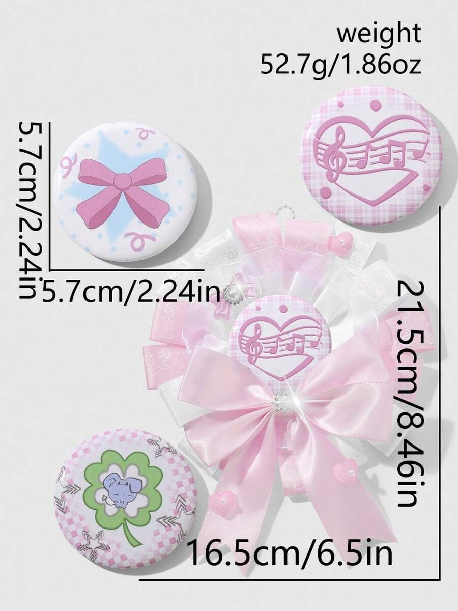 Anime 3 قطع مجموعة دبابيس مغناطيسية مزينة بالورود الوردية الناعمة والشرائط الدانتيل والبلورات والأشكال المتنوعة كالقلب والفراشة والنجوم والرقبع والفيونكة، مناسبة للكوسبلاي وأزياء الأنمي والاستخدام اليومي والهدايا المناسبة للمناسبات