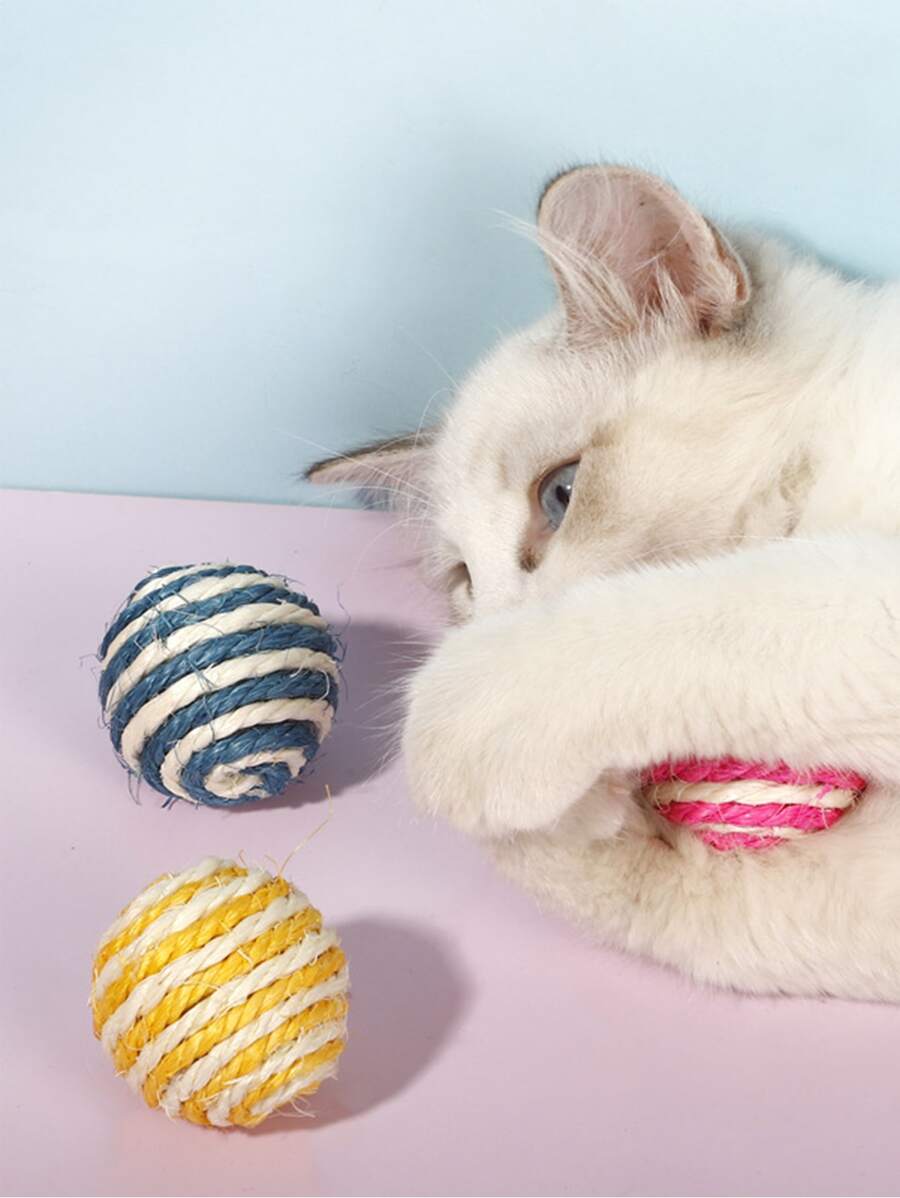 كرة لعبة قط مخطط بلون عشوائي 3 قطغ