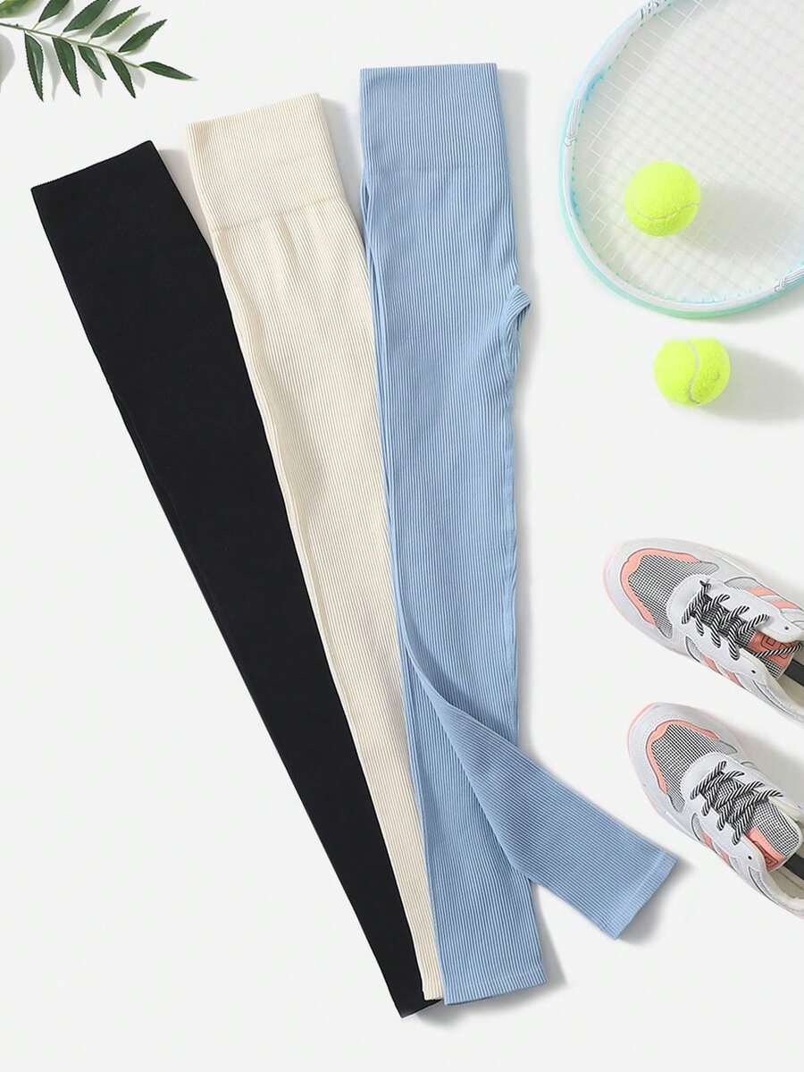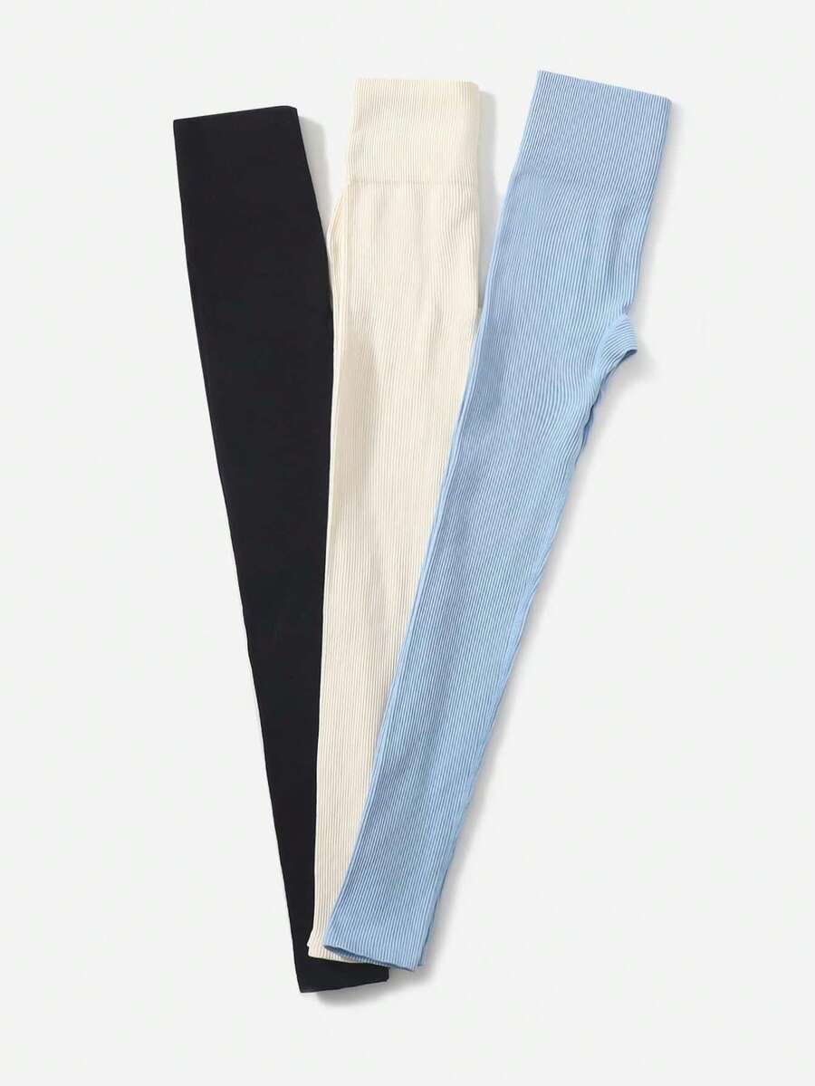 مجموعة تدريبات ثوب سراويل 3قطع بدون درزات لليوجا بريب-نسيج الضلع، متوسط الإمتداد، ليقنز الجيم والتحكم بالبطن