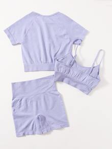 سلس عالية تمتد اللياقة البدنية اليوغا البدلة تجريب مجموعة راجلان كم أعلى السراويل واسعة حزام 3 قطع