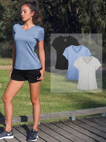 3 قطع تي شيرت رياضي بأكمام قصيرة وياقة V