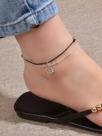 قطعة واحدة من خلخال فضي مزدوج الطبقات مطرز بشكل عشوائي للنساء، إكسسوار للعطلات