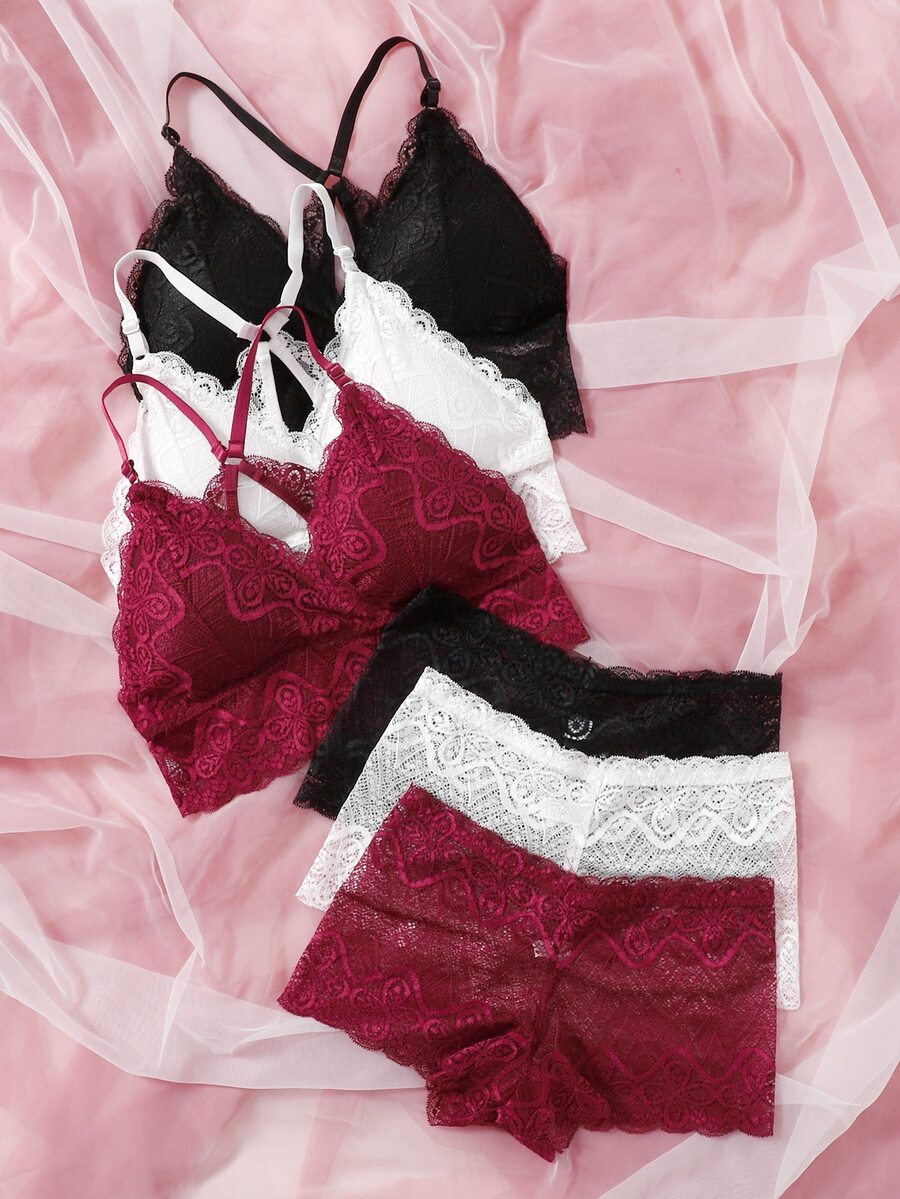 مجموعة ملابس داخلية بشكل أزهار عبارة عن حمالة صدر وكلسون قصير، مكونة من 3 أطقم
