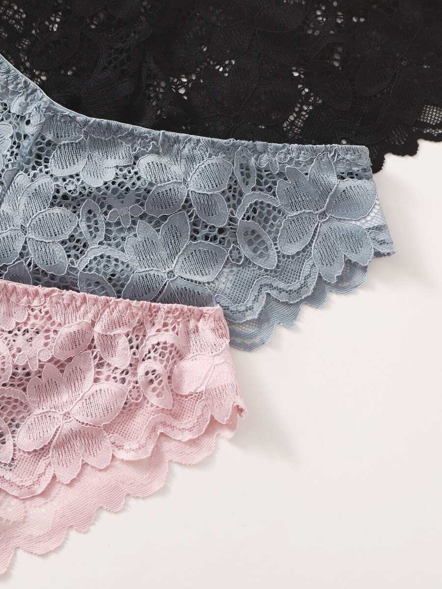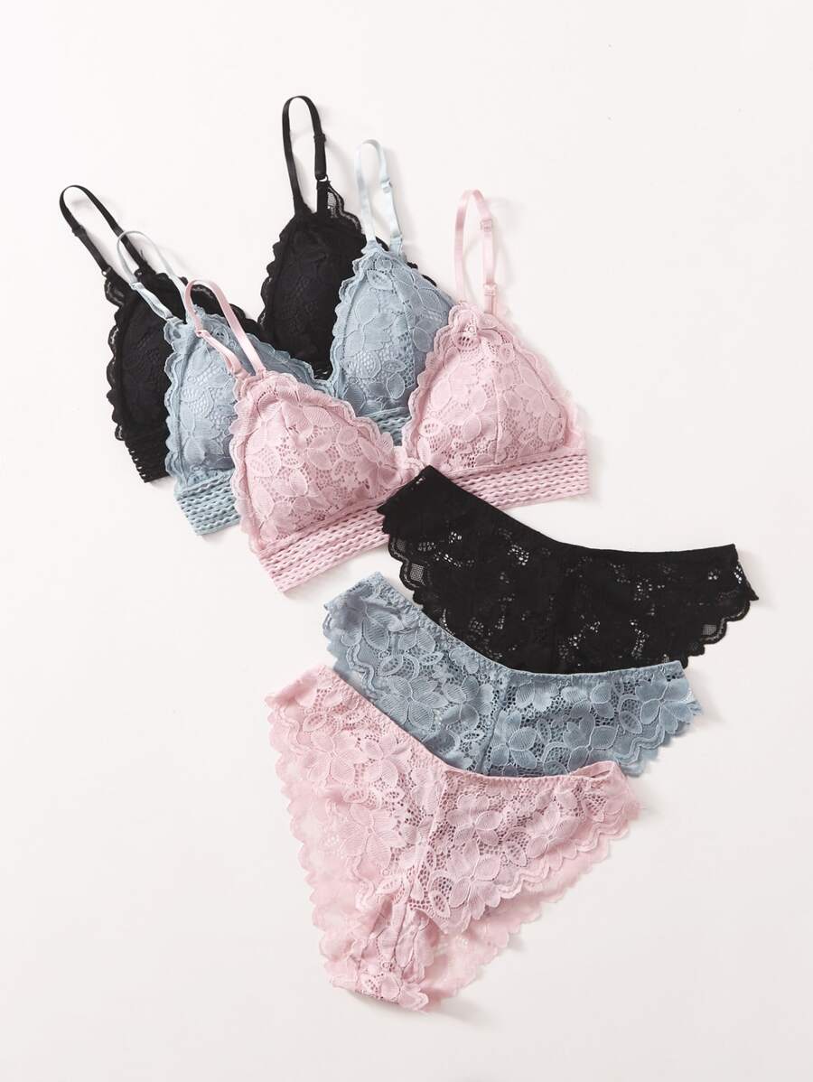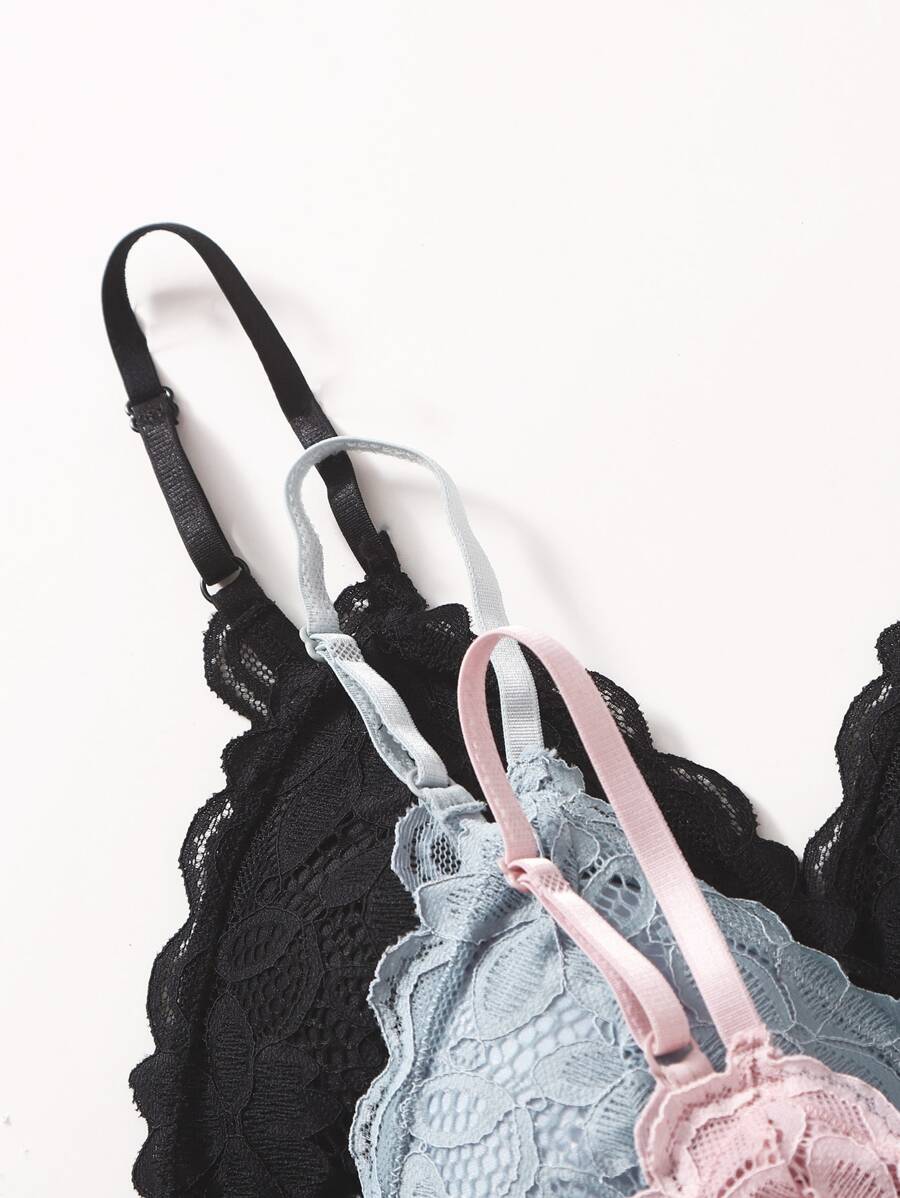 ثلاثية من مجموعات حمالة الصدر والبنطلون الداخلي اللامع بنمط الزهور