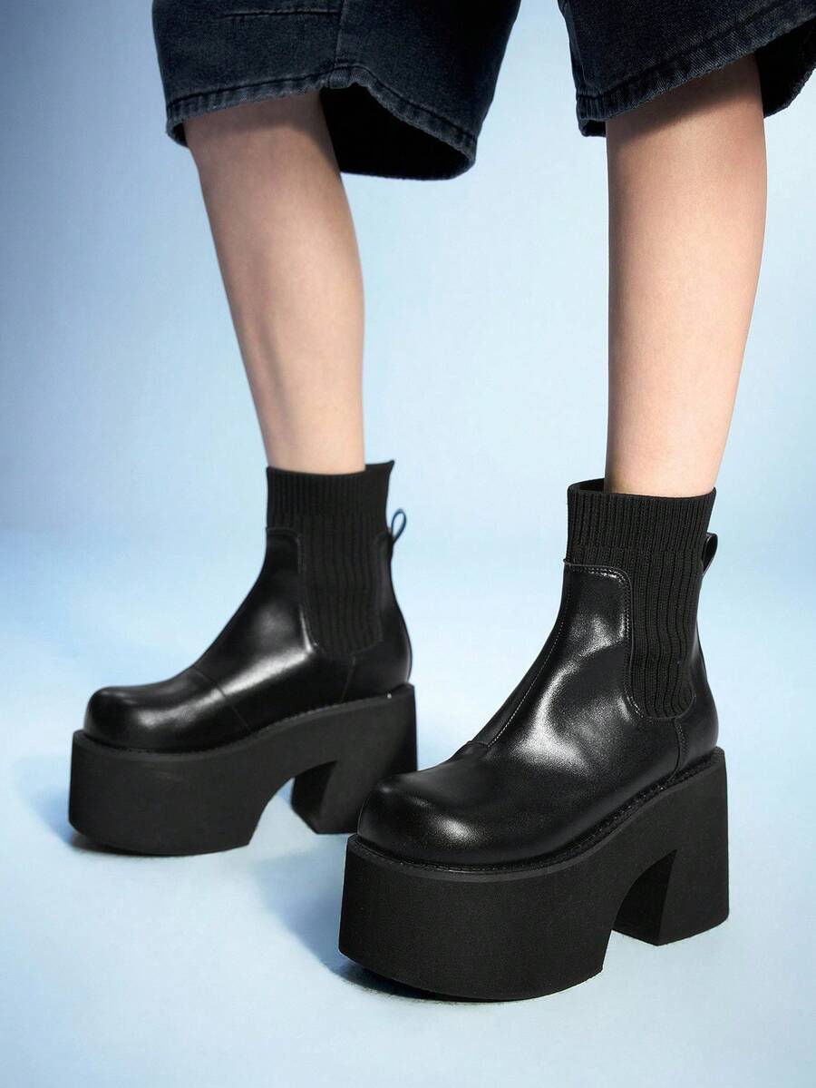Grunge Punk بوت كاحل مطاطية بنعل سميك بطراز بانك جوث، بوت قصيرة بكعب سميك وأساس مدبب، بوت للتنقل اليومي للنساء بسماكة 4 بوصة