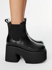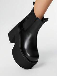 Grunge Punk بوت كاحل قصيرة بكعب سميك ومنصة سميكة 4 بوصة، أصابع قدم مستديرة وساق مرنة، كعب سميك بطراز جوثي بانك، من الجلد، بوت للتنقل اليومي للنساء