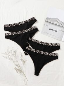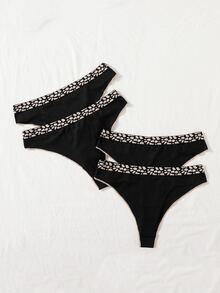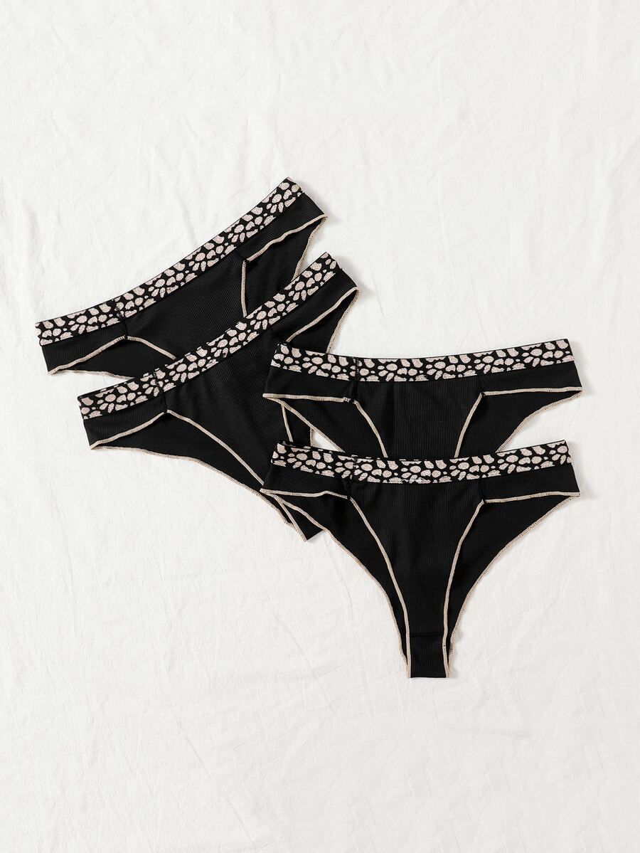 طقم سراويل داخلية من 4 قطع مزينة بألوان متباينة