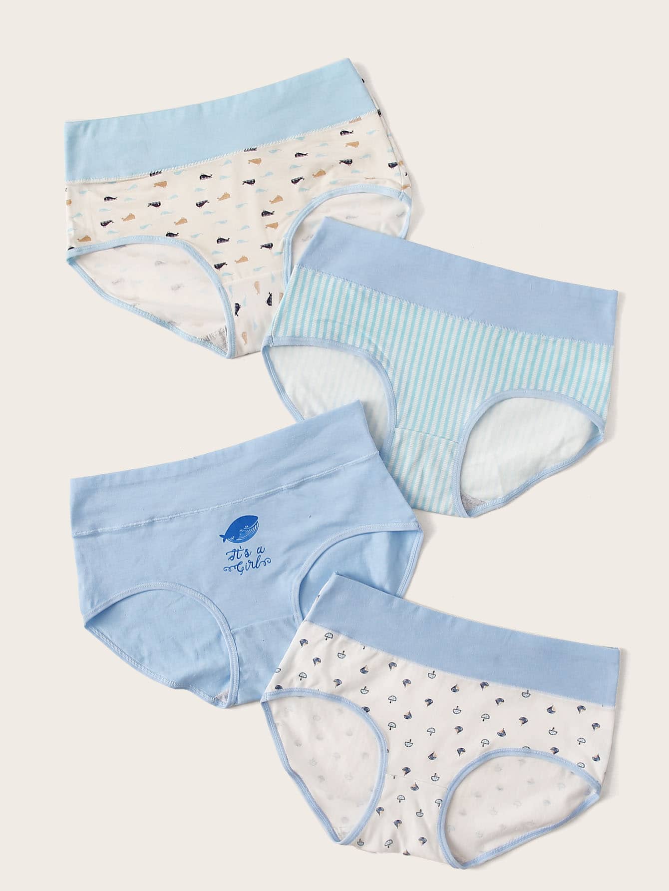 مجموعة سراويل داخلية مخططة وبنقشة السمك 4 حبة