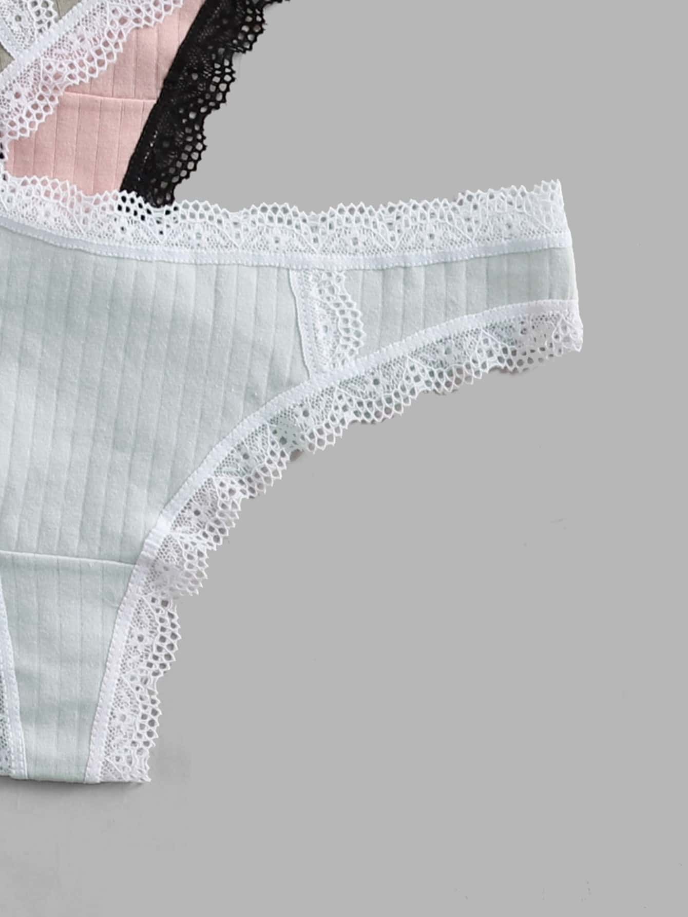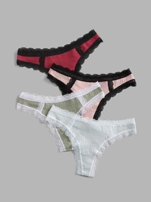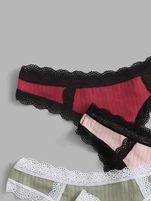طقم سروال داخلي مقلم دانتيل 4 قطع