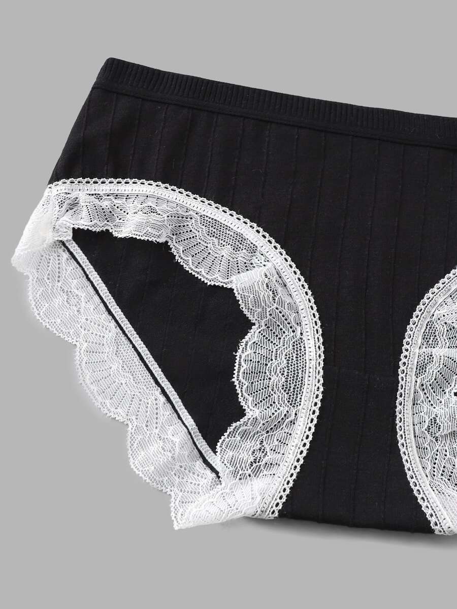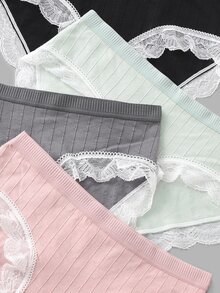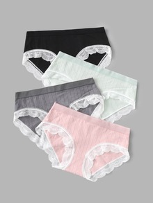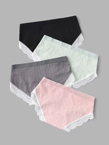 طقم سروال داخلي مقلم دانتيل 4 قطع