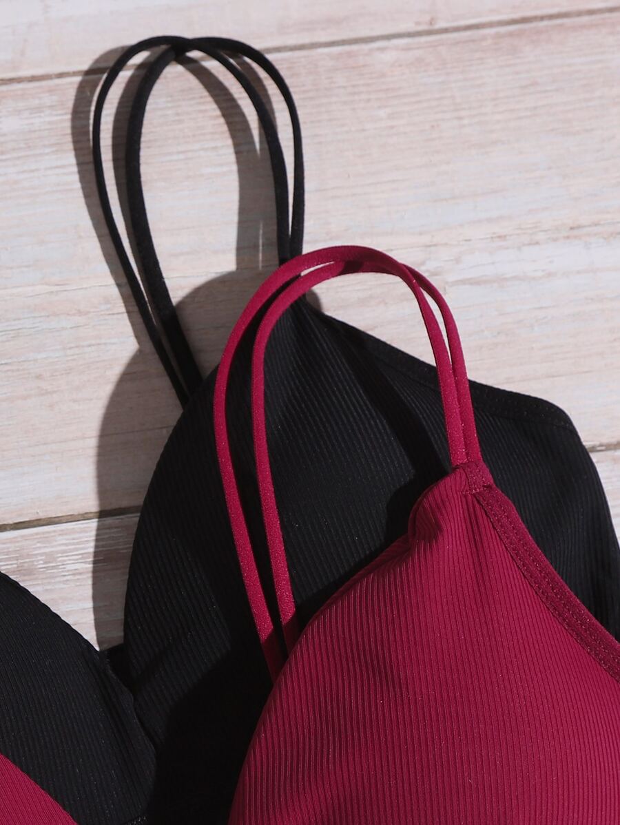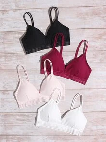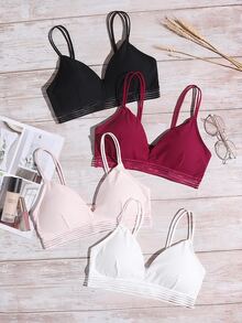 حمالة صدر نسائية كاجوال من قماش سادة، متعددة الألوان، متوسطة المطاطية، مع تباين شبكي ظهر مكشوف