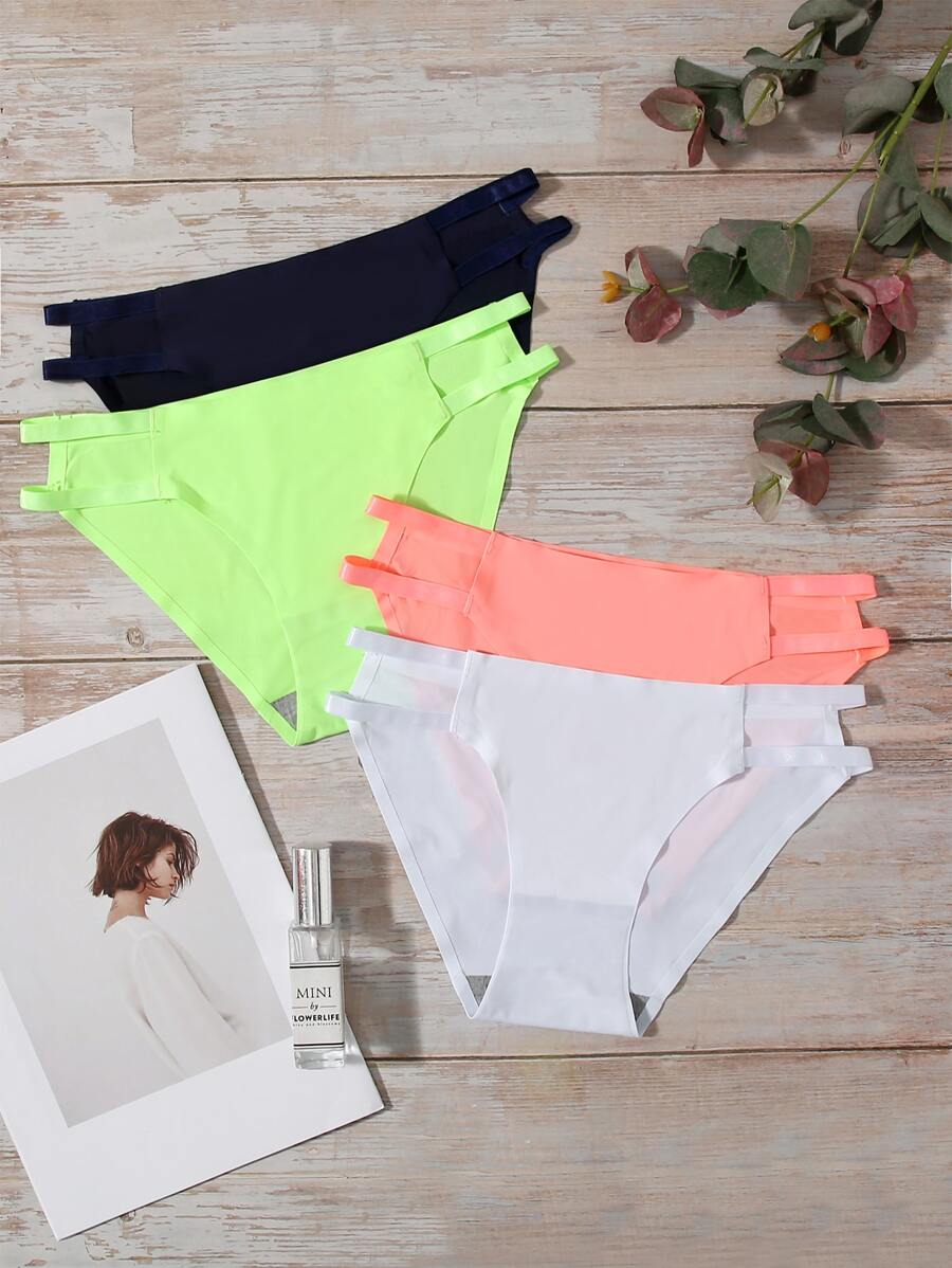 طقم سراويل داخلية مكونة من 4 قطع بلون سادة