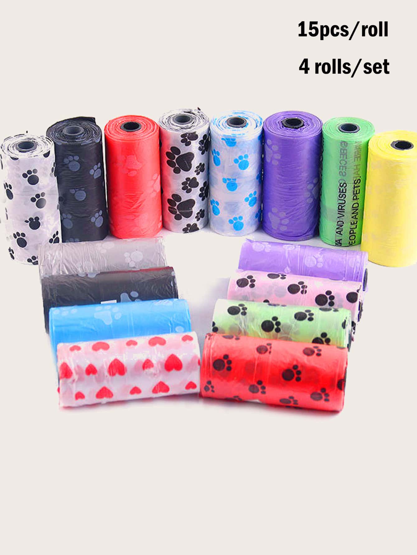 كيس قمامة لون عشوائي مخلب طباعة، حقيبة قمامة صغيرة للحيوانات الأليفة المنزلية 4 لفات