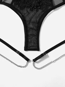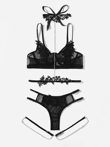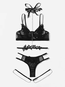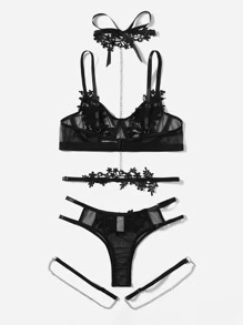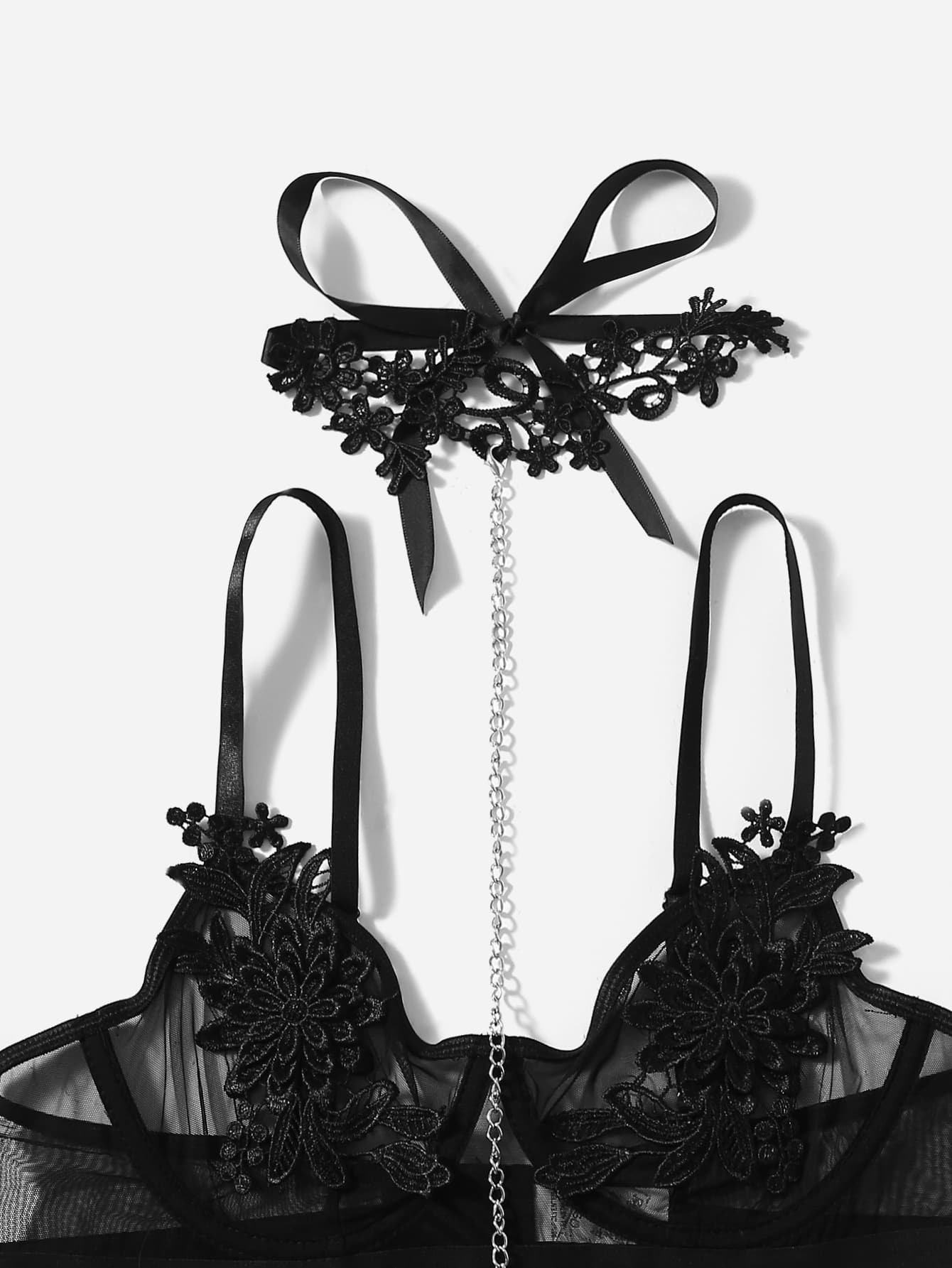 طقم ملابس داخلية زين شبكة حلقة معدني ربطة ساق مع قلادة 5 قطع