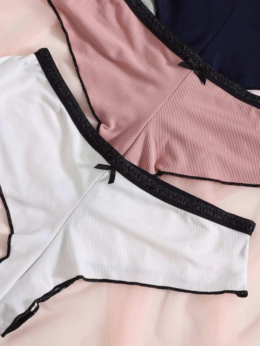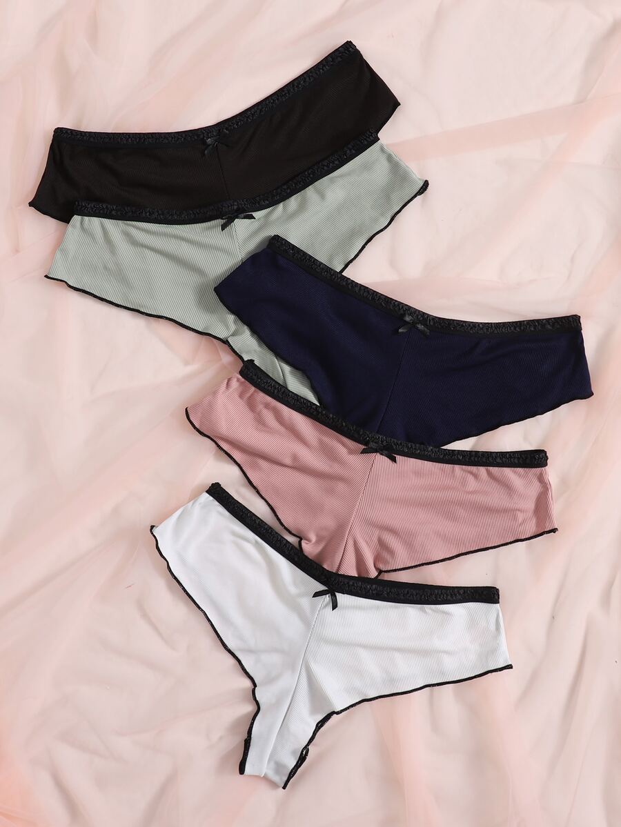 طقم لباس داخلي بشريط متباين مقاس كبير 5 قطع