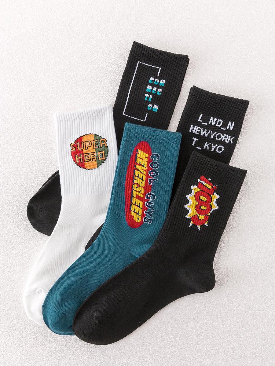 جوارب عال طاقم بطباعة أحرف ي 5 أزواج للرجال