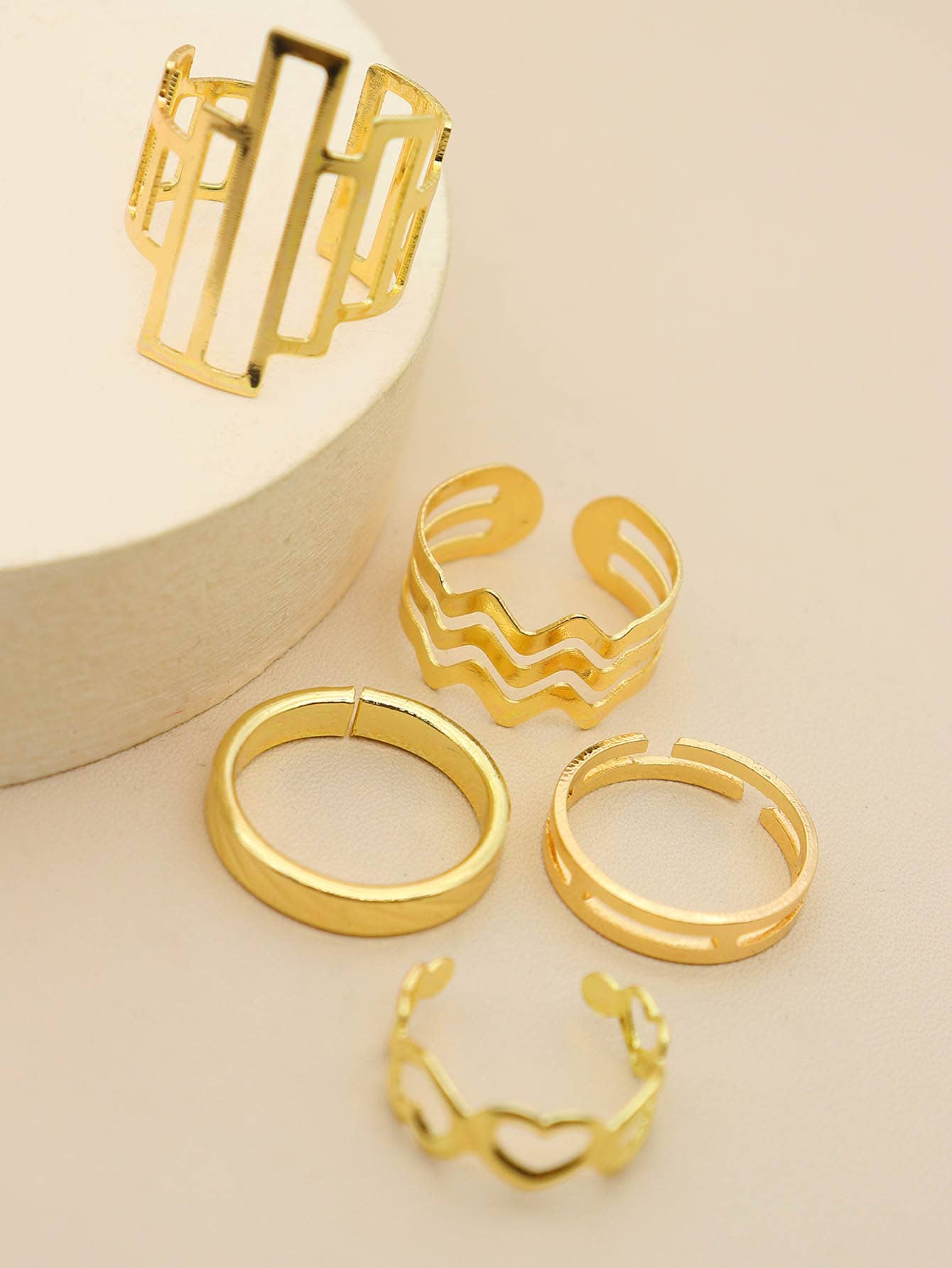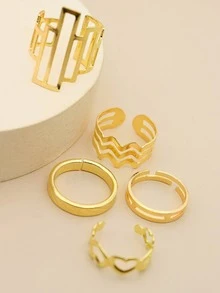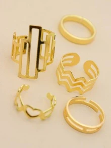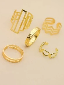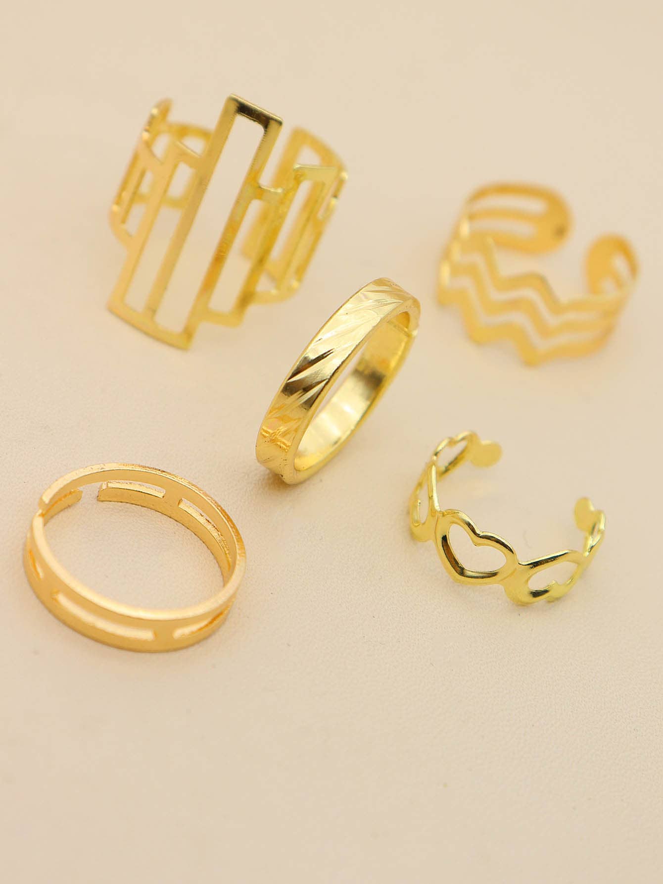 طقم خواتم معدنية بسيطة غير متماثلة بموجة قلب 5قطع/طقم