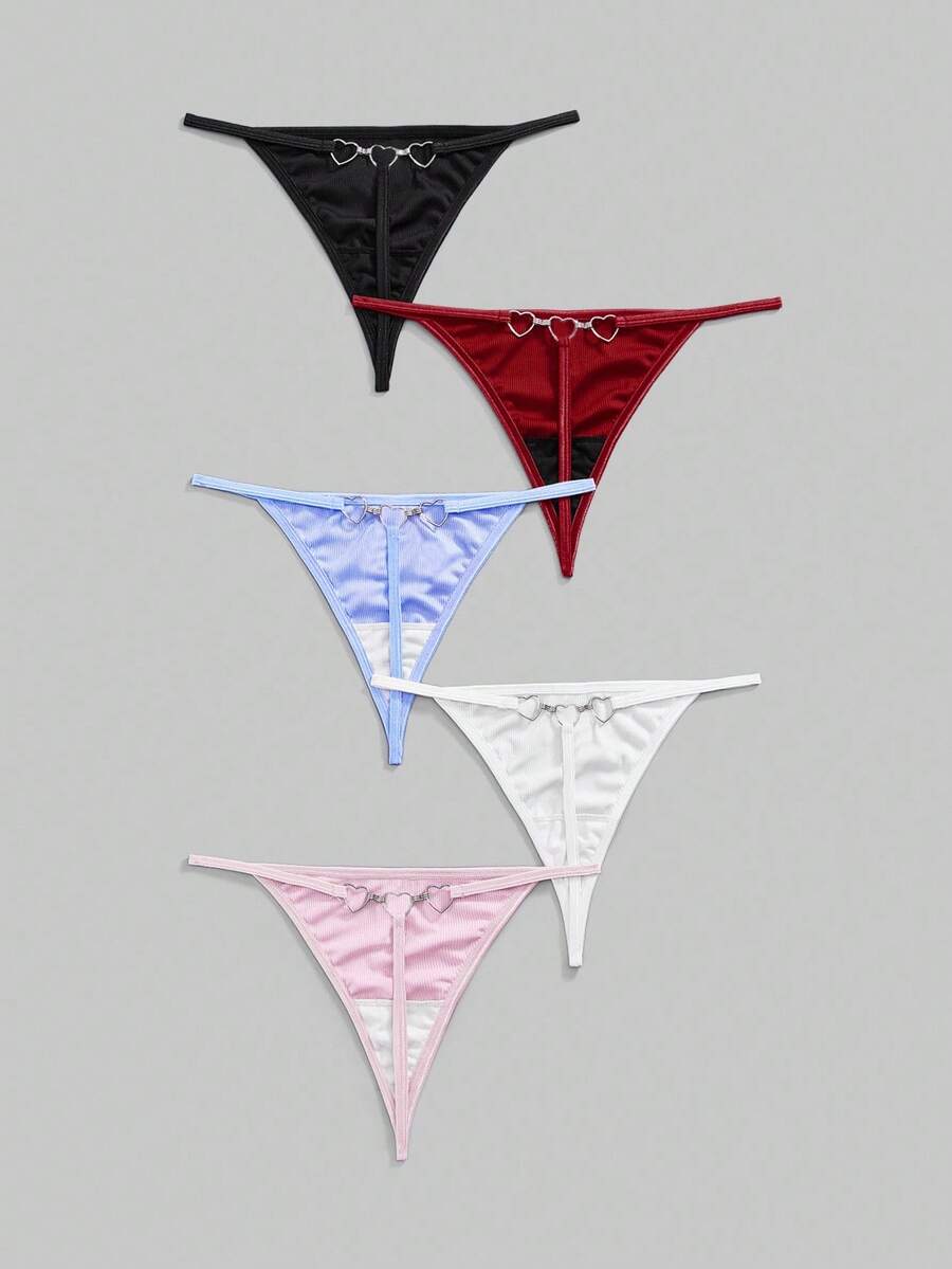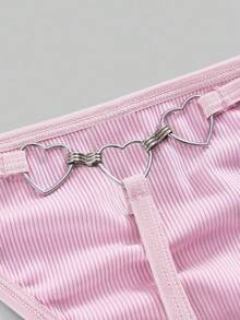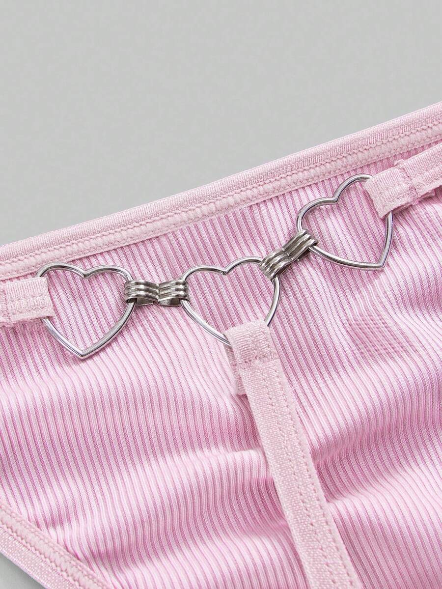 5 قطع/مجموعة ملابس داخلية نسائية مجموعة سلسلة معدنية قلب محبوك مخطط