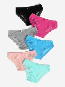 طقم سروال داخلي مقلم دانتيل 6 قطع