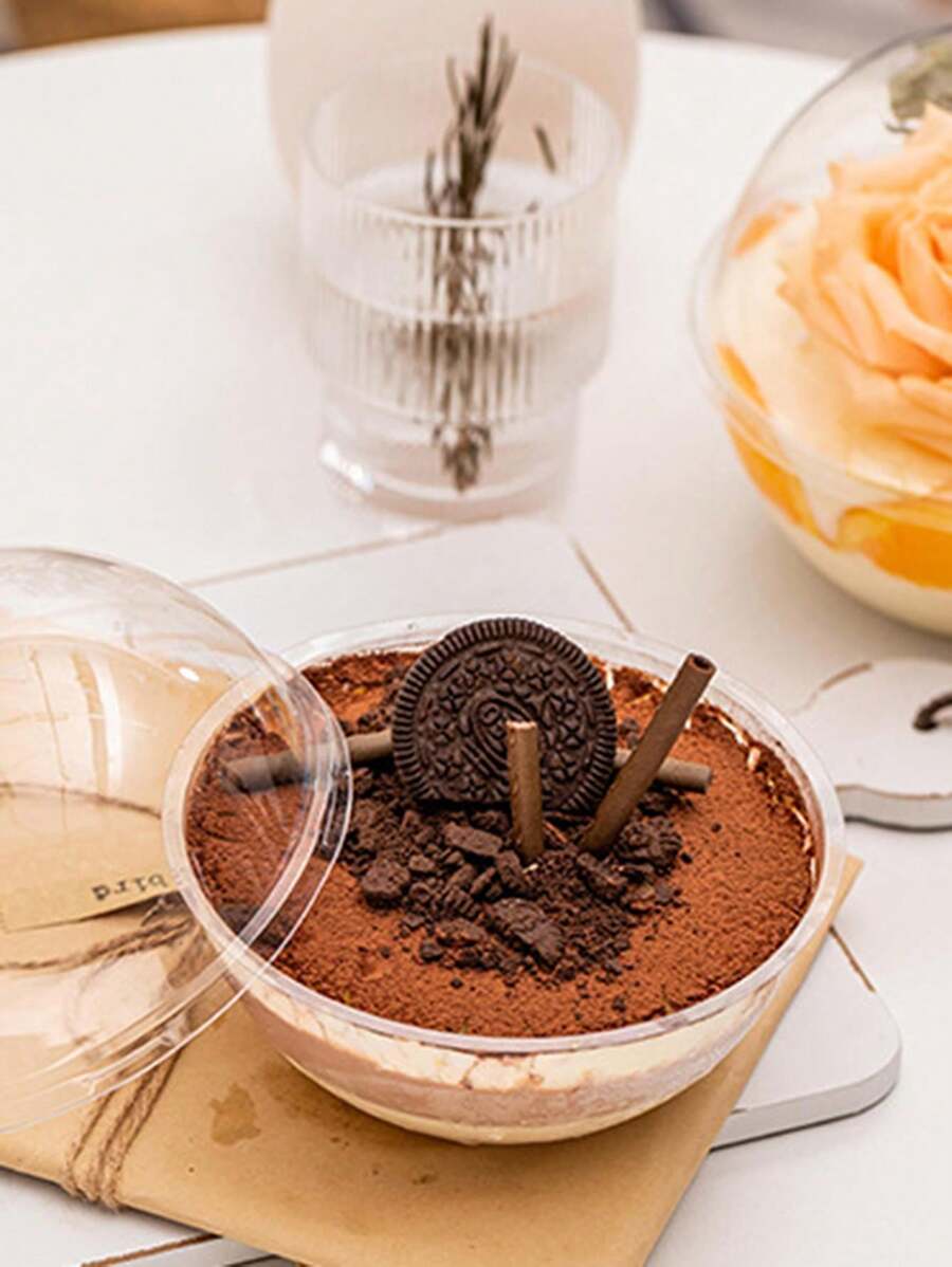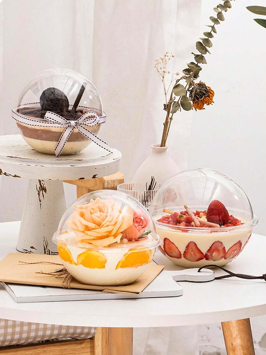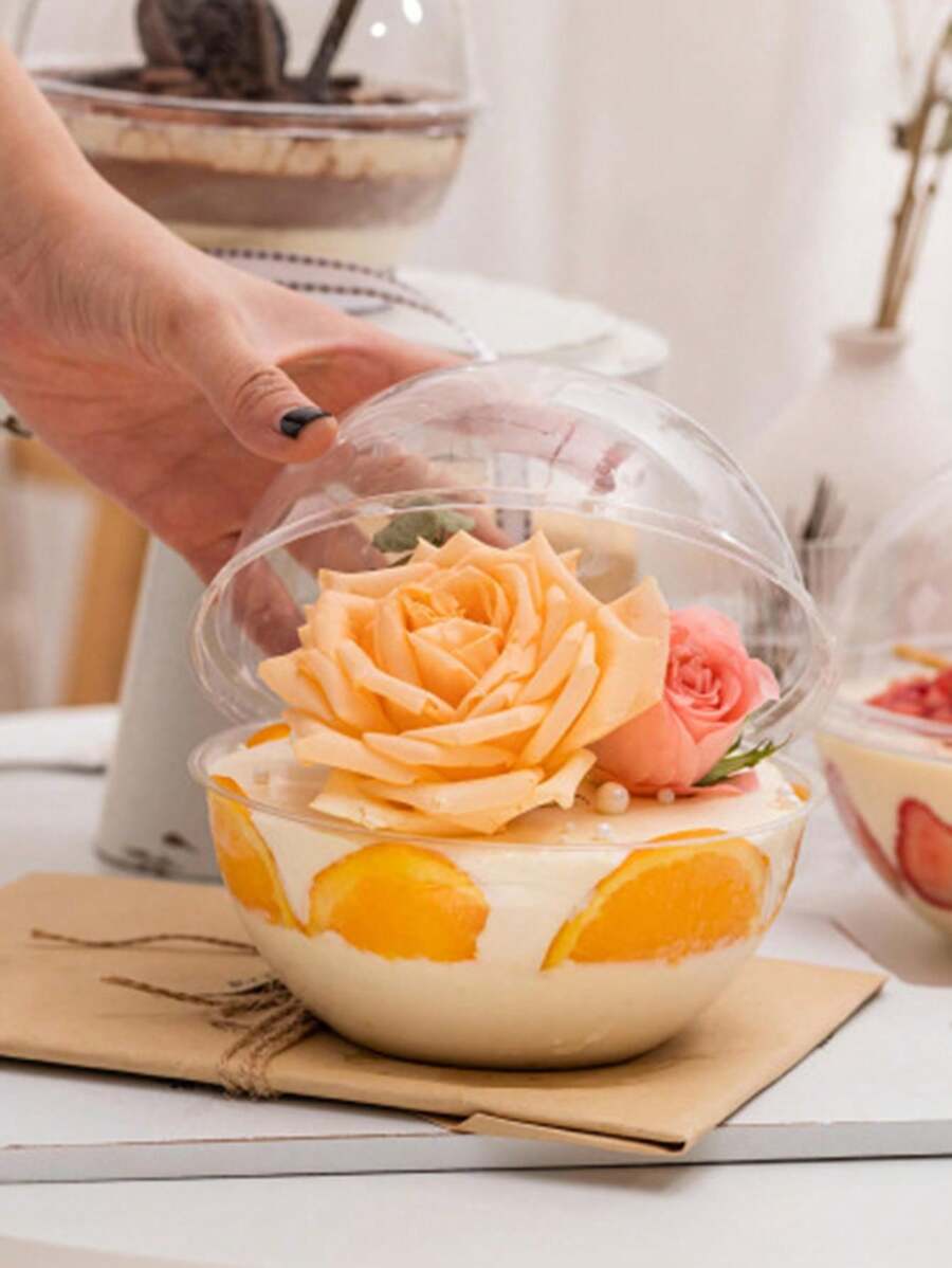 مجموعة 6قطع صناديق كيك دائرية شفافة سعة 390مل لكعك الموس والحلويات