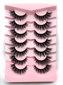 7 مرت بشكل كامل مع رموش سميكة ومنحنية بطول 16 مم ناعمة وممشوقة رموش طويلة شريطية لنظرة عين القطة اليومية، رموش، رموش اصطناعية