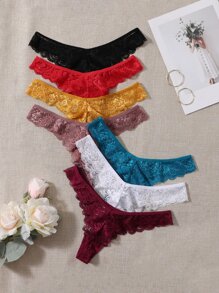 طقم سروال داخلي دانتيل زهري 7 قطع