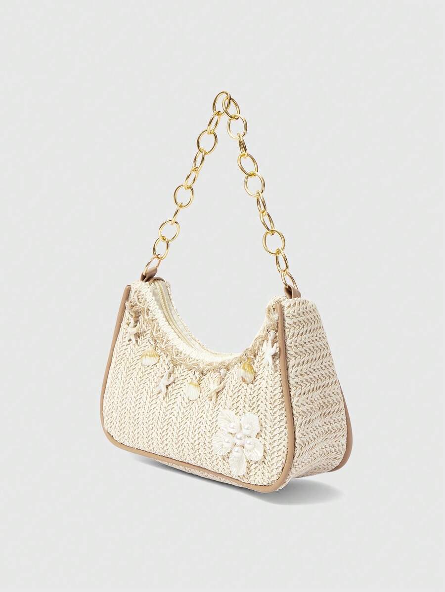 Fairycore مجموعة من حقائب الشاطئ المرسومة بالكروشيه والإكسسوارات، حقيبة رسول أنيقة شخصية بطراز منتجع الشاطئ مزينة بالأصداف والدانتيل