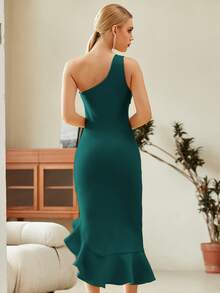 فستان بحافة غير متماثل مطوي امامي وبكتف واحد