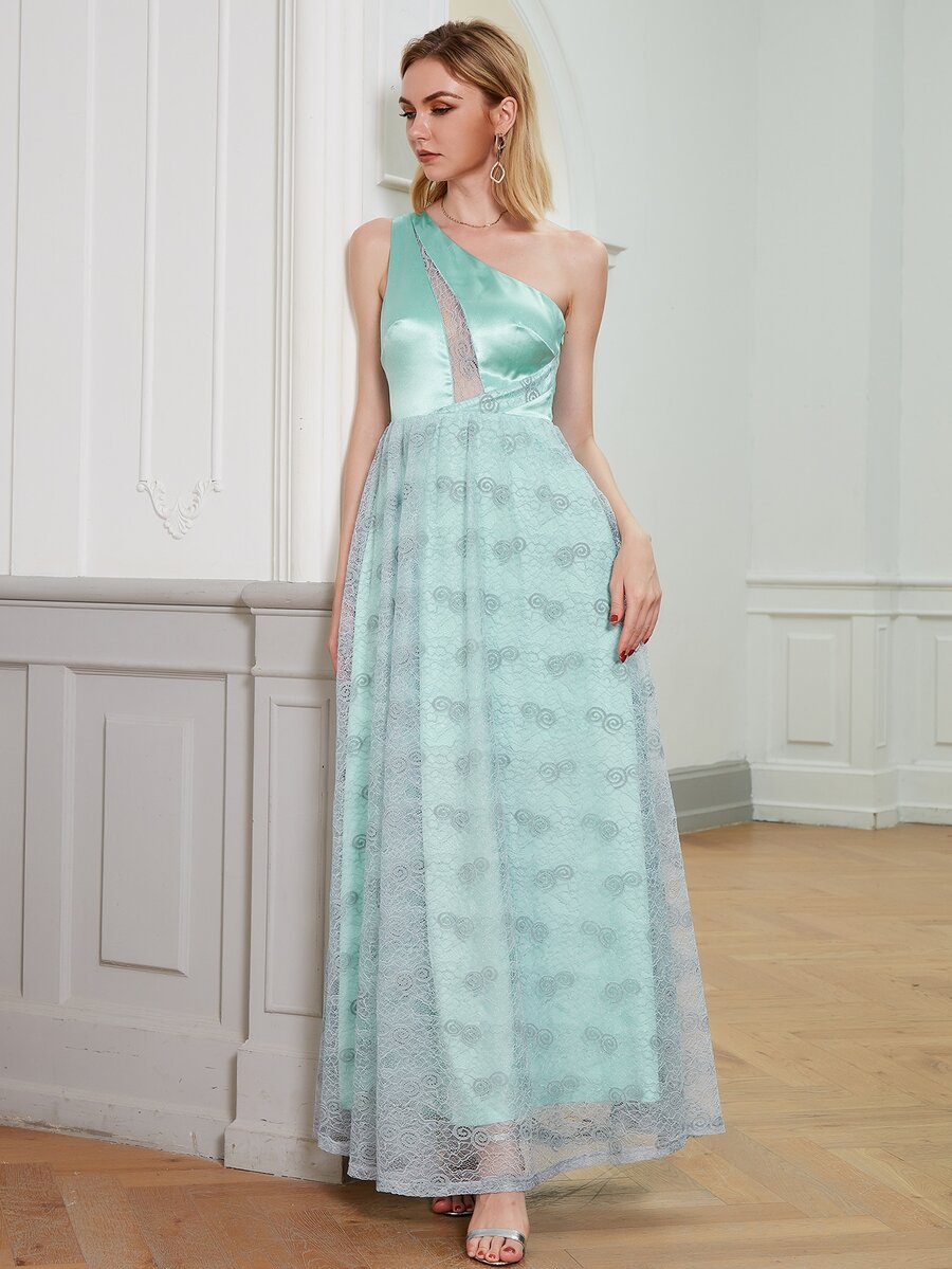 ANGEL FASHIONS فستان حفلة دانتيل ساتان وبكتف واحد ازياء الملاك