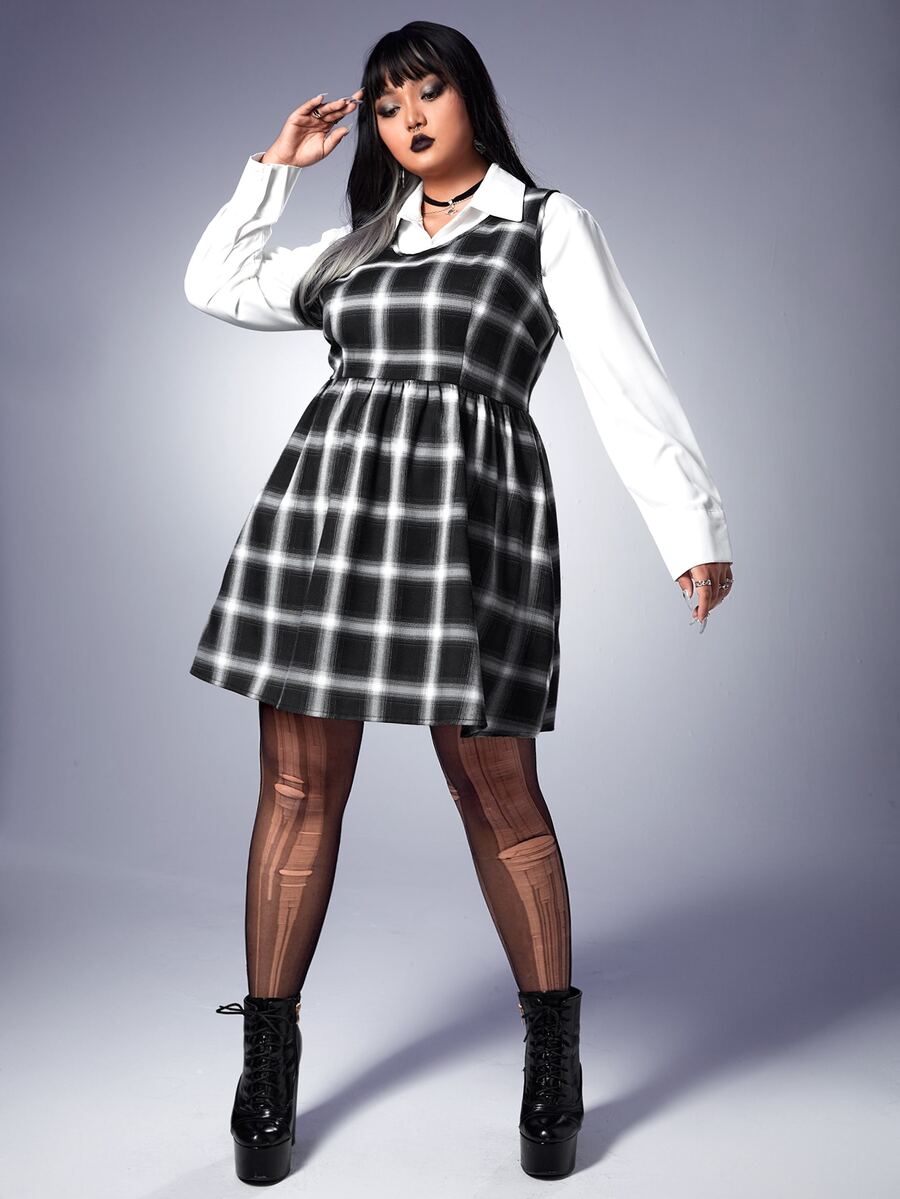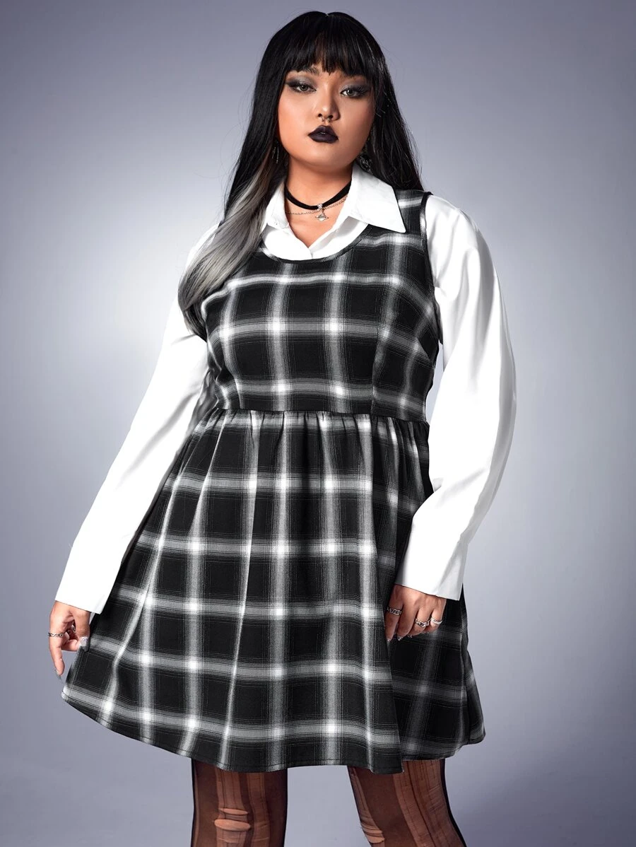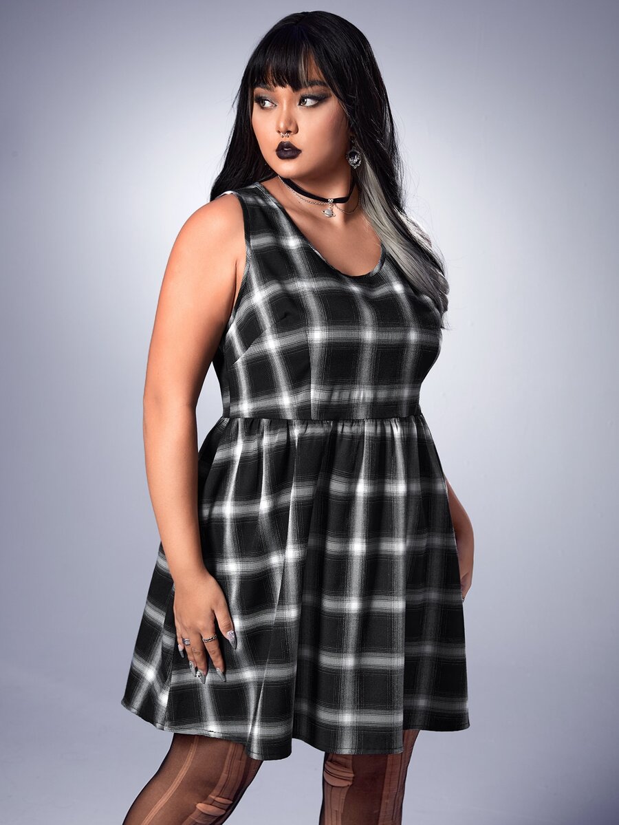 Academia فستان بطباعة الترتان بدون بلوزة مقاس كبير